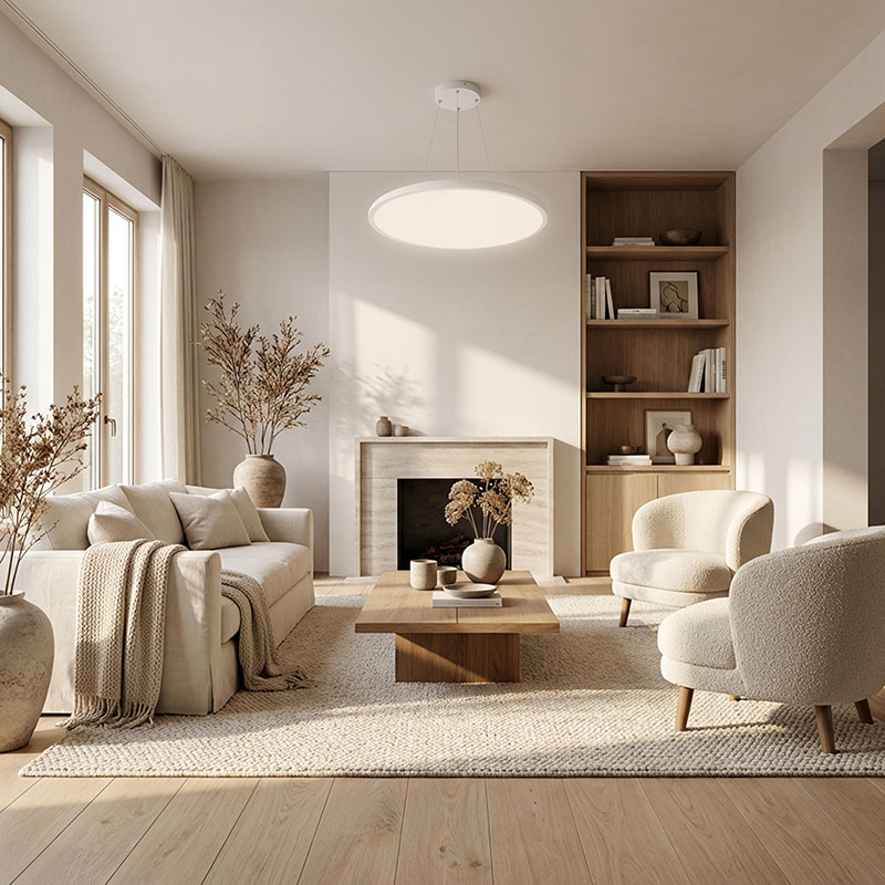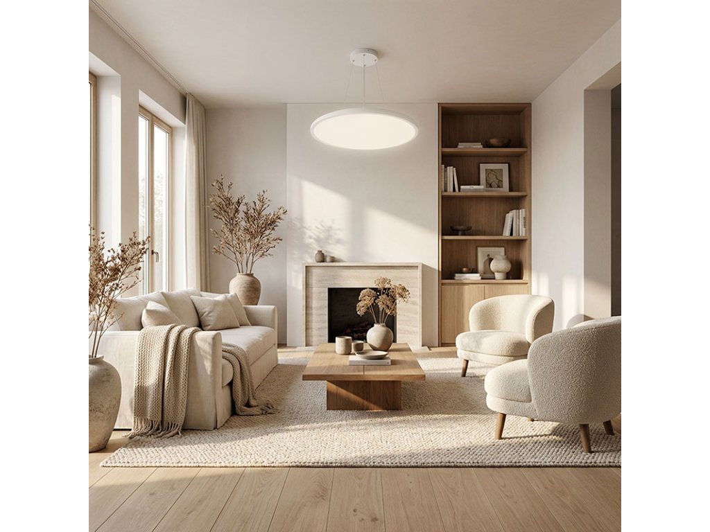 Montáž je flexibilná – svetlo je možné inštalovať priamo na strop alebo zavesiť pomocou inštalačného setu, ktorý je súčasťou balenia. Panel má vysoký index podania farieb (CRI > 80), uhol svietenia 120 ° a dlhú životnosť LED až 20 000 hodín. Dizajnové prevedenie v bielej farbe a kompaktné rozmery 500 × 27 mm dopĺňa elegantný vzhľad celého interiéru. Vďaka hodnote UGR < 19 panel zároveň eliminuje nežiaduce oslnenie a vytvára príjemné pracovné alebo odpočinkové prostredie.