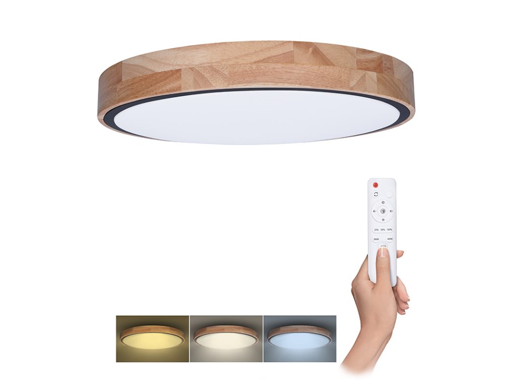Svietidlo Iron Oak LED so stmievaním kombinuje prirodzenú estetiku masívneho dubového dreva s modernou technológiou diaľkového ovládania. Svietidlo umožňuje nastaviť teplotu svetla v rozmedzí 3000K-6500K a plynule regulovať intenzitu svetla. S maximálnym príkonom 60 W a svetelným tokom až 4200 lm (pri teplote 4000 K) poskytuje silné a rovnomerné osvetlenie obytných priestorov, kancelárií a reprezentatívnych interiérov.