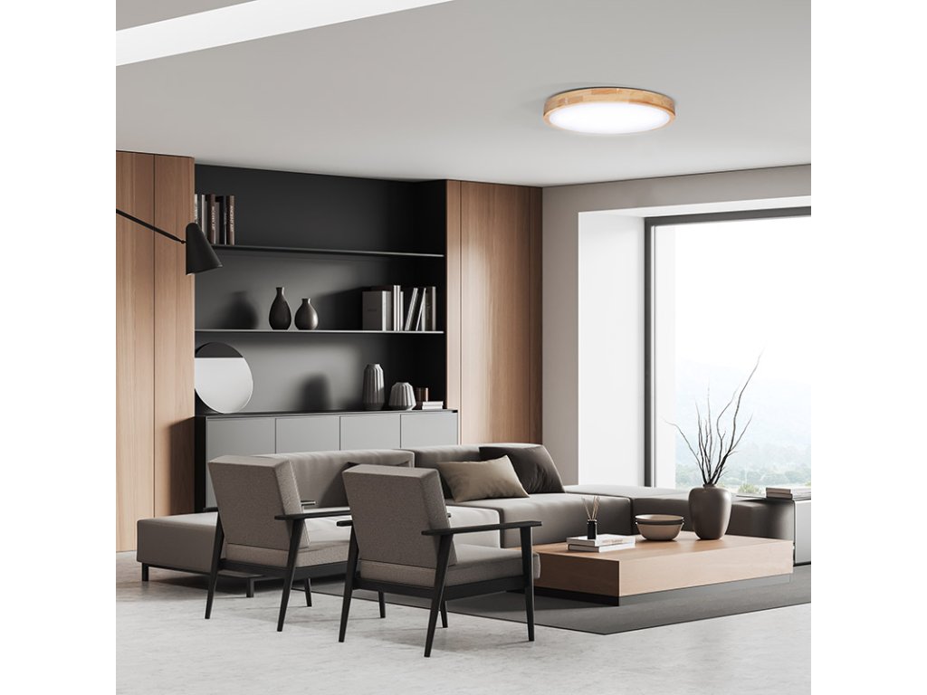 Svietidlo je vybavené kvalitnou technológiou LED so životnosťou 20 000 hodín, má šírku 505 × 90 mm a uhol svietenia 120°. Kombinácia prírodného dreva, kovovej základne a difúzora z PMMA vytvára elegantné a robustné svietidlo s vynikajúcim podaním farieb (Ra >80). Je ideálne pre veľké obytné priestory, kancelárie alebo reprezentatívne interiéry.