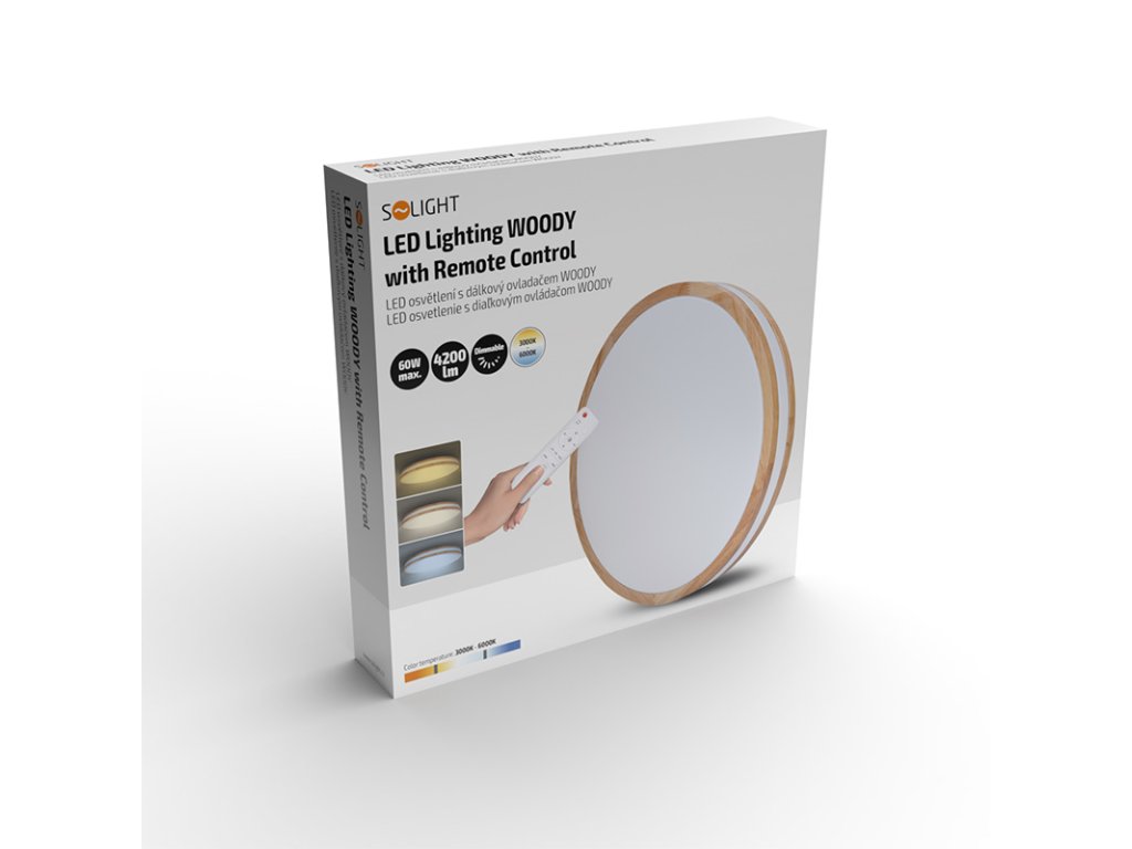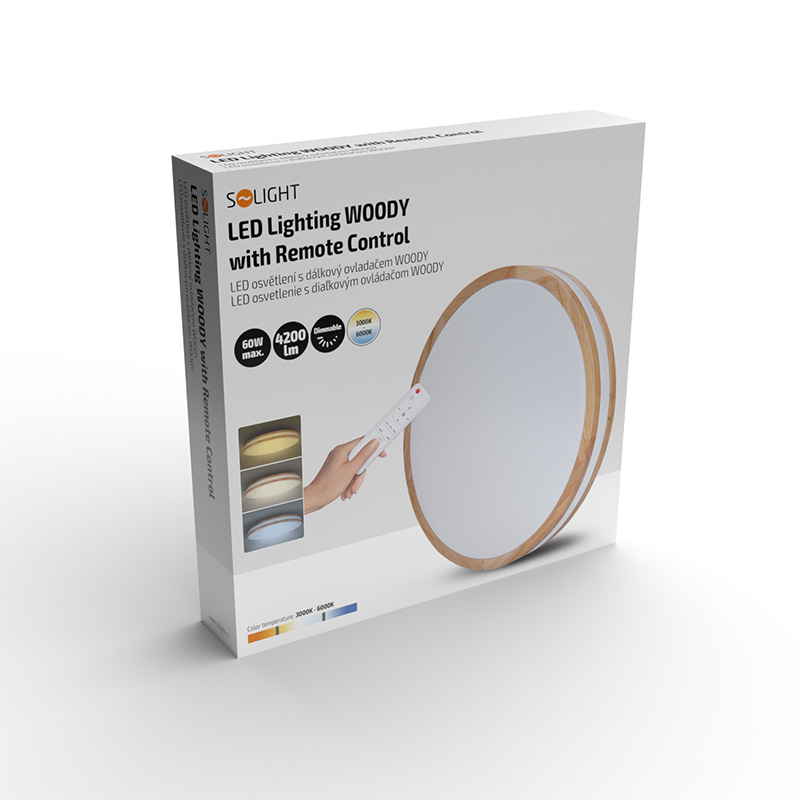 Solight LED osvetlenie s diaľkovým ovládačom Woody, 60W, 4200lm, 50cm, zmena chromatickosti, stmievateľné