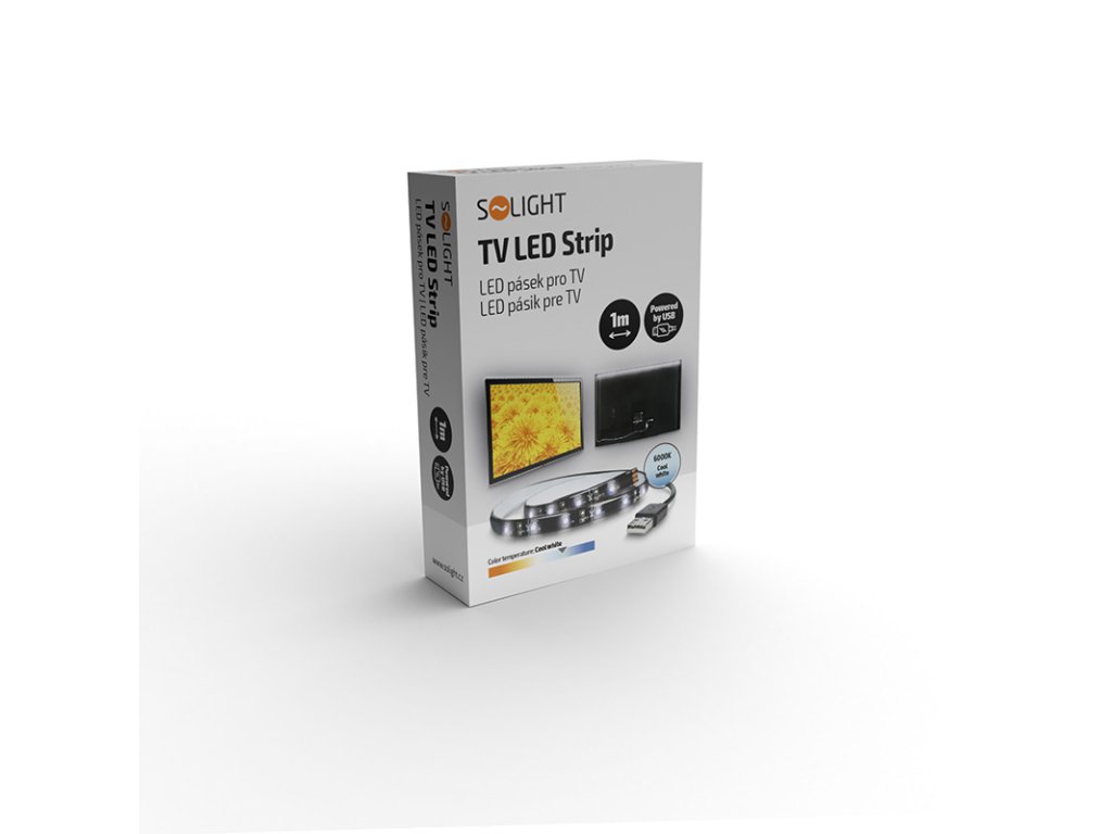 Solight LED pásik pre TV, 100cm, USB, vypínač, studená biela