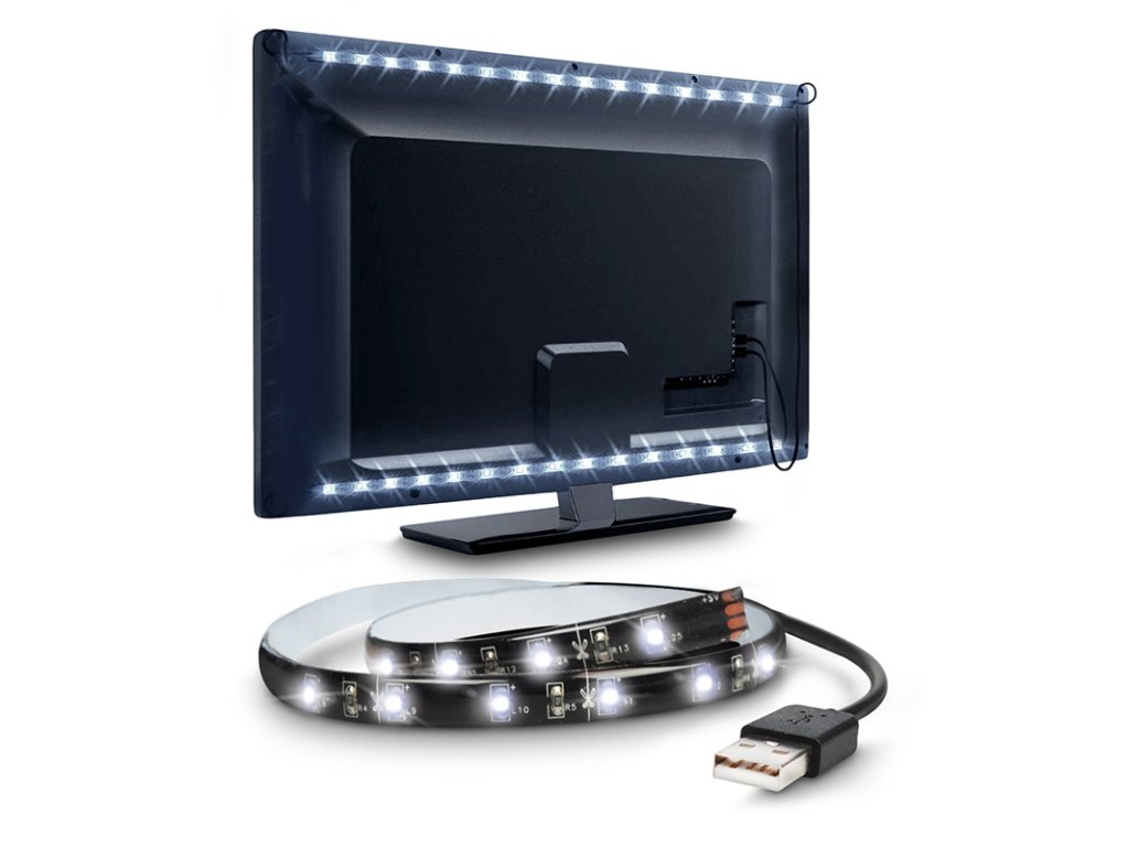 Jednoduché, ale účinné riešenie na osvetlenie monitora alebo televízora - pás LED s dĺžkou 1 m a napájaním cez konektor USB A. Vďaka studenej bielej teplote svetla 6500 K znižuje únavu očí pri sledovaní obrazovky za šera.