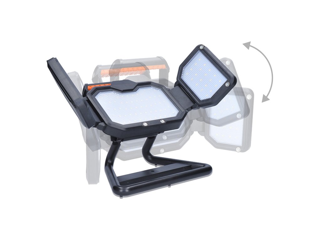 Silný, praktický a všestranný - presne taký je prenosný reflektor LED s výkonom až 30 W a svetelným tokom 3 000 lúmenov pri plnom nabití. Ponúka neutrálne biele svetlo (4000 K), ktoré je ideálne na prácu v interiéri aj exteriéri. Tri úrovne osvetlenia (100 %, 50 %, 20 %) umožňujú prispôsobiť intenzitu svetla konkrétnej situácii.