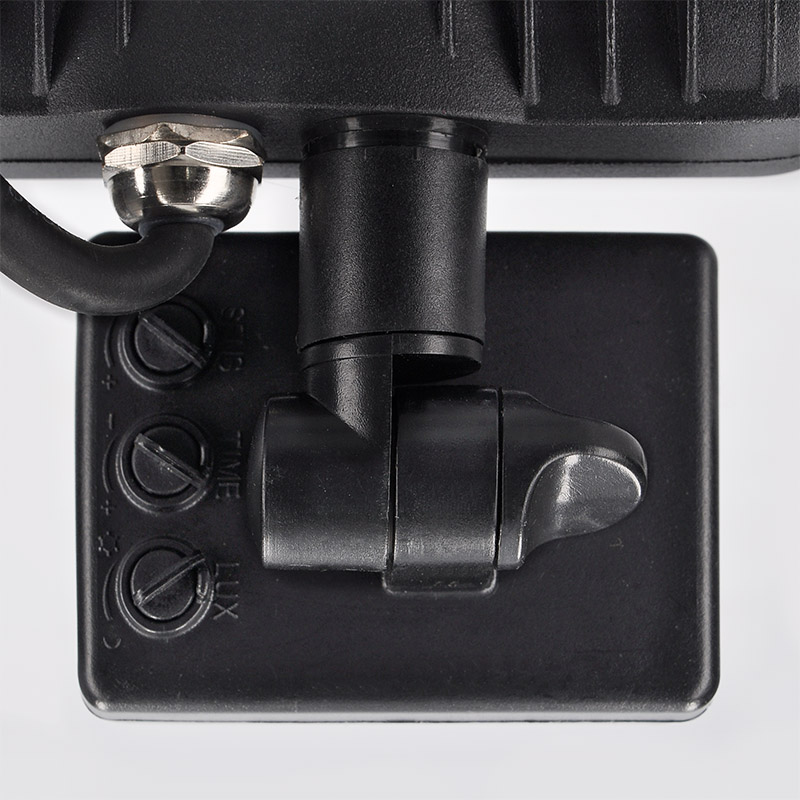 Nastaviteľná dĺžka svietenia (5 s - 10 min) a citlivosť snímača (3 - 2 000 luxov) zabezpečujú maximálnu flexibilitu. Odolné telo z hliníkového tlakového odliatku s krytím IP44, rozmery: 120 × 190 × 30 mm. Napájanie: striedavý prúd 220-240 V, 50 Hz.