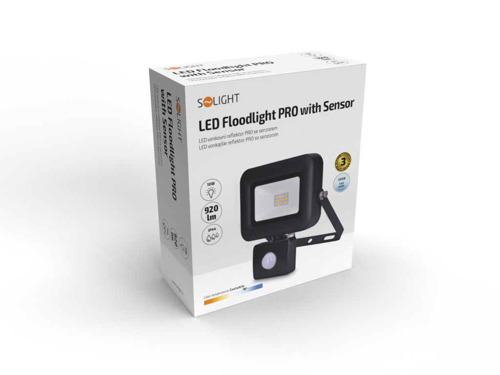 Solight LED reflektor PRO so senzorom, 10W, 920lm, 5000K, IP44