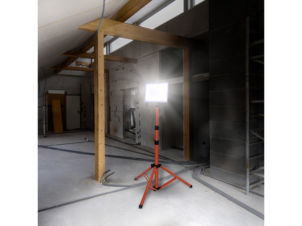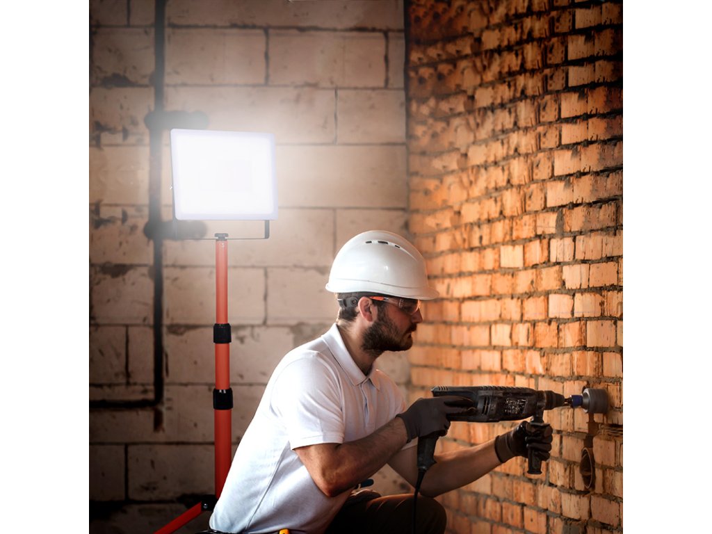 Profesionálne pracovné svetlo LED s výkonným 100W čipom a svetelným tokom 9000 lm je namontované na teleskopickom stojane s výškou 80-162 cm. Ideálne na staveniská, servisné práce alebo osvetlenie väčších plôch. Ponúka neutrálne biele svetlo (4000 K) a uhol svietenia 120°.