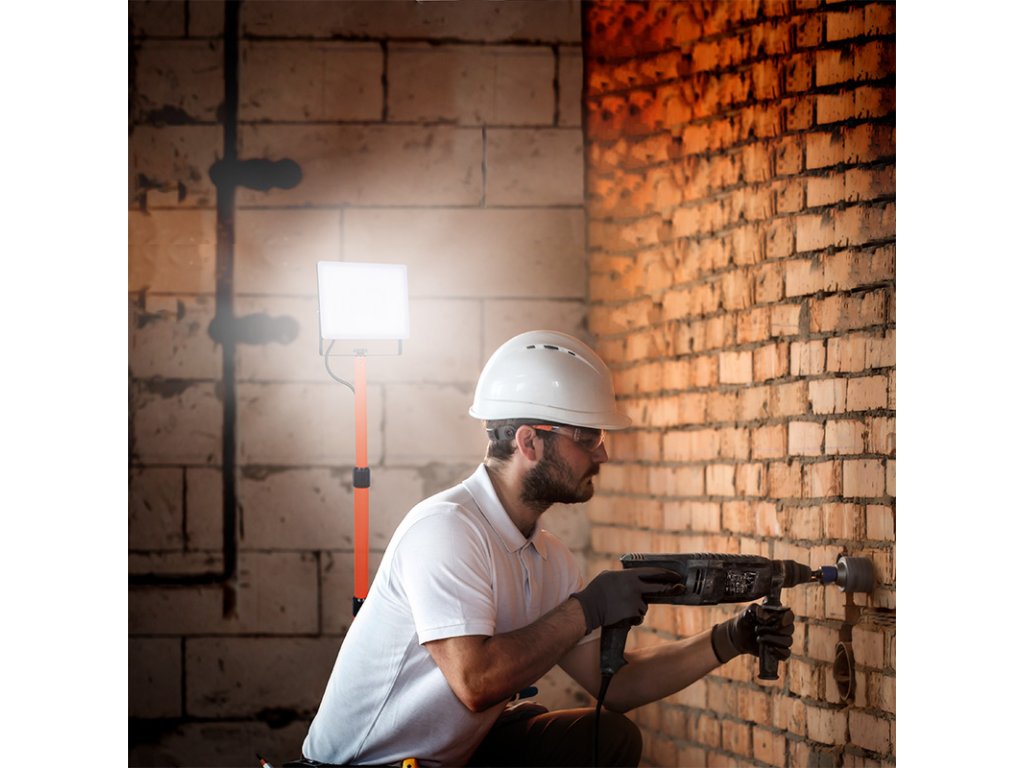 Vďaka výsuvnému teleskopickému stojanu (výška až 162 cm) je reflektor ideálny na staveniská, do dielní alebo na vonkajšie podujatia. Odolná konštrukcia z tlakovo liateho hliníka s krytím IP65 zaručuje ochranu pred vodou a prachom. Reflektor je vybavený napájacím káblom (1,5 m), životnosťou LED 30 000 hodín a CRI > 80.