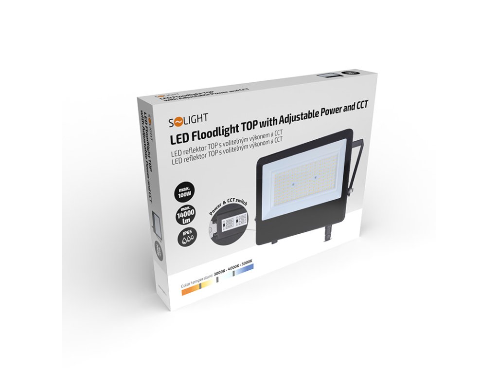 Solight LED reflektor TOP, 100W, max. 14000lm, 3CCT, voliteľný výkon 100/75/50%, IP65, rýchlokonektor