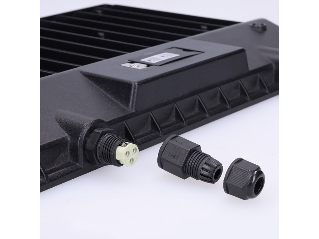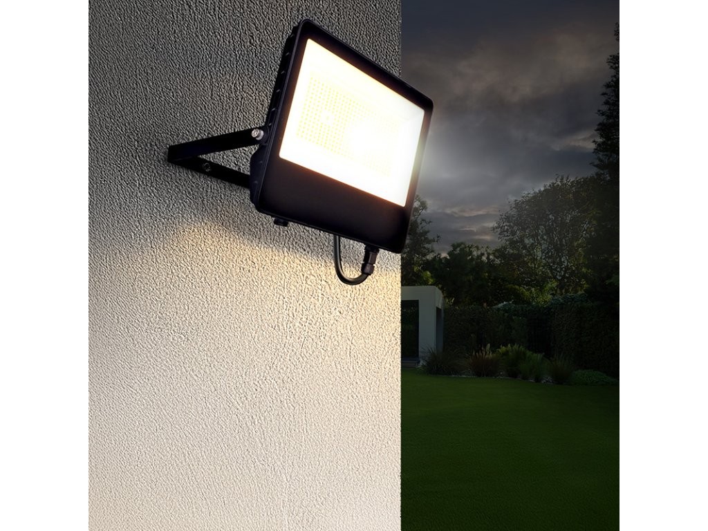 Krytie IP65 a vodeodolný konektor umožňujú vonkajšie použitie aj v náročných podmienkach. Reflektor je vybavený LED čipmi so životnosťou 25 000 hodín a poskytuje široký svetelný kužeľ 120 °, ideálny pre rovnomerné nasvietenie plochy. Rozmery činia 320 × 230 × 30 mm, telo je z odolného hliníka a elegantnej čiernej farby. Tento reflektor je robustné, flexibilné a efektívne riešenie pre profesionálne nasadenie vo vonkajších priestoroch.
