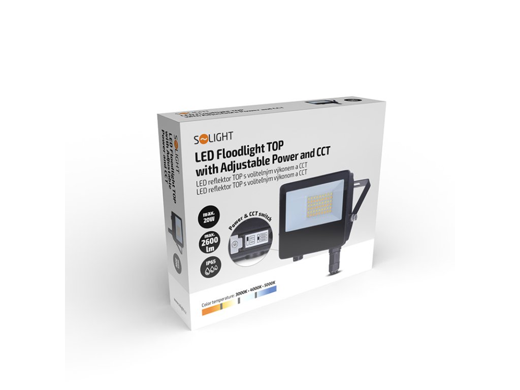 Solight LED reflektor TOP, 20W, max. 2600lm, 3CCT, voliteľný výkon 100/50%, IP65, rýchlokonektor
