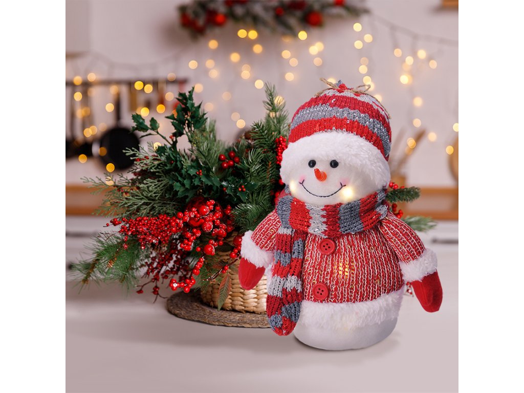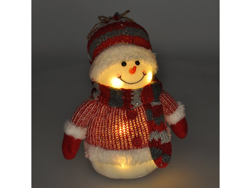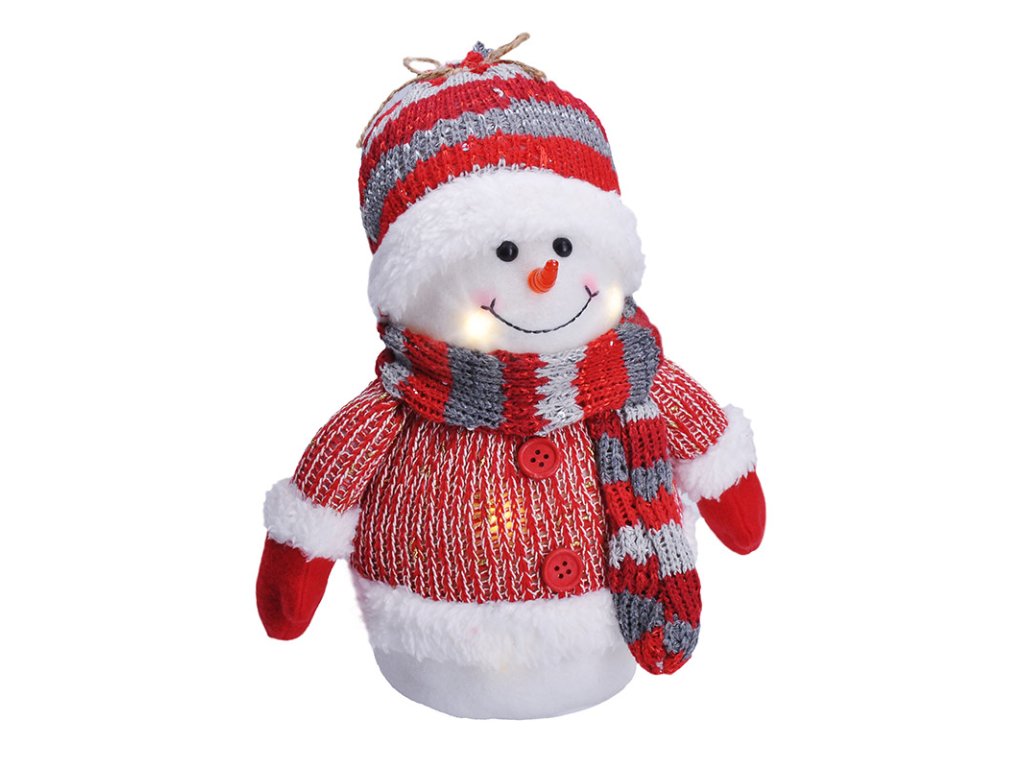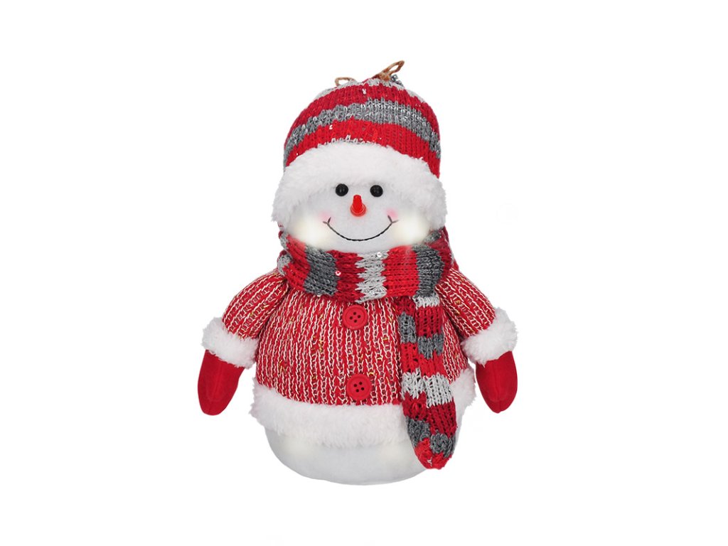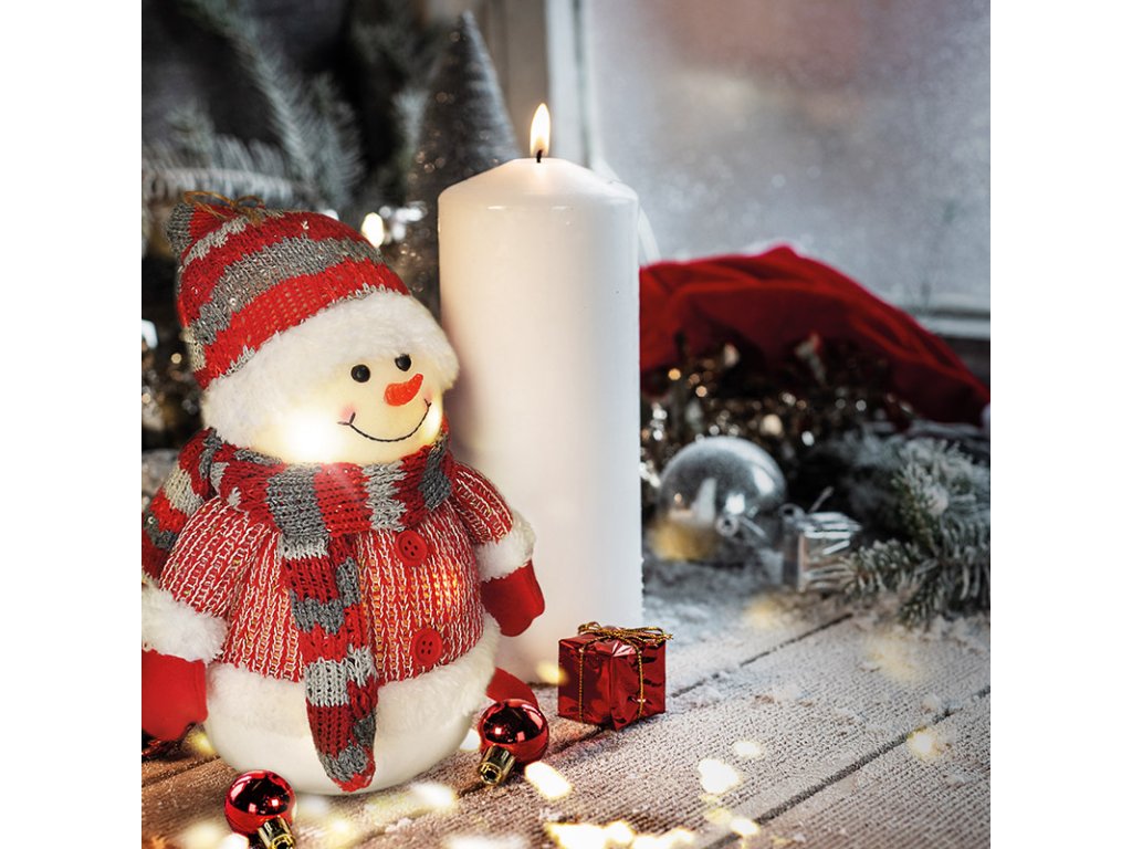 Veselý LED snehuliak je vynikajúcou voľbou na oživenie vášho vianočného interiéru. Výška 26 cm a farebné prevedenie v bielej a červenej farbe z neho robia výraznú a hravú dekoráciu, ktorá poteší najmä deti. Šesť teplých bielych LED diód jemne osvetľuje celé telo snehuliaka, čím zvýrazňuje jeho detaily.