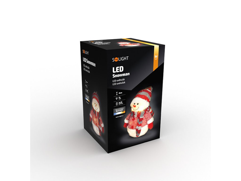 Napájanie zabezpečujú 3x batérie AA (nie sú súčasťou balenia), stupeň krytia IP20 ho určuje na použitie v interiéri. Ľahko ho umiestnite na stôl, parapet alebo komodu, kde bude pôsobiť ako roztomilý a veselý prvok sviatočnej výzdoby. Dodáva sa v praktickej škatuľke, ktorá uľahčuje jeho skladovanie a darčekové balenie.