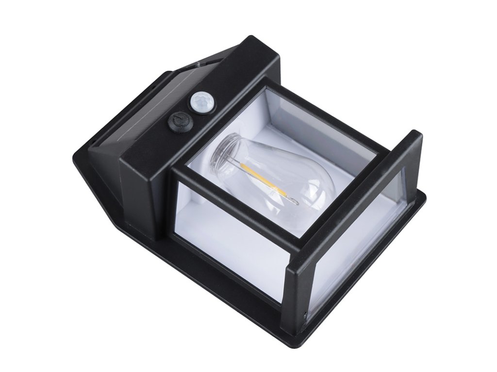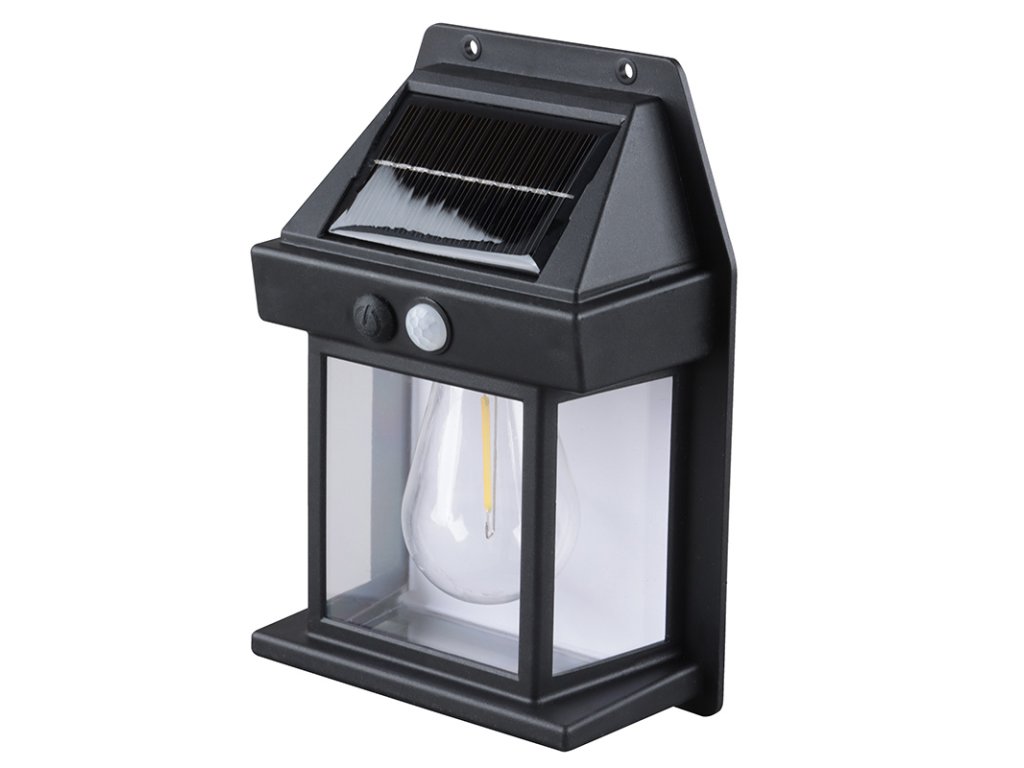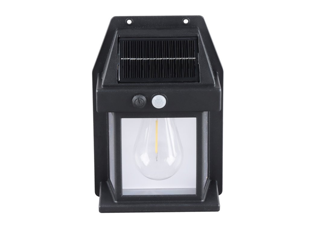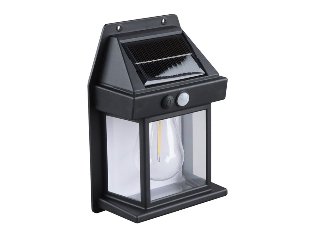 - LED vonkajší solárny nástenný lampáš so vstavanou žiarovkou, pohybovým a svetelným senzorom