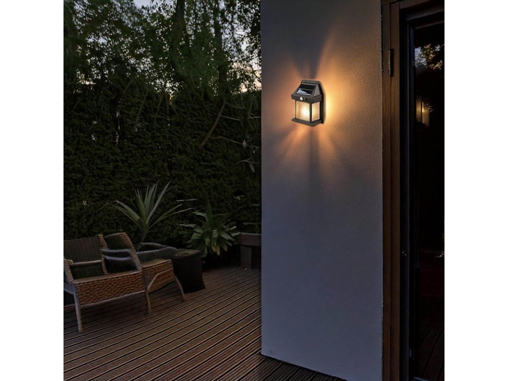 Táto LED solárna lampáš je ideálna pre orientačné aj dekoratívne nasvetlenie stien či fasád. Vstavaná žiarovka s teplým bielym svetlom (3000K) ponúka príjemnú atmosféru a 3 režimy svietenia (100%, 50%, 30%), ktoré je možné prispôsobiť vašim potrebám. Vďaka svetelnému a pohybovému senzoru sa lampáš pri detekcii pohybu automaticky rozsvieti pri zotmení, pokiaľ je dostatočne nabitá.