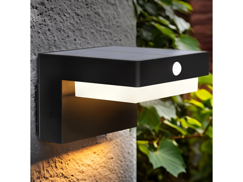 - LED nástenné osvetlenie so solárnym panelom a svetelným a pohybovým čidlom