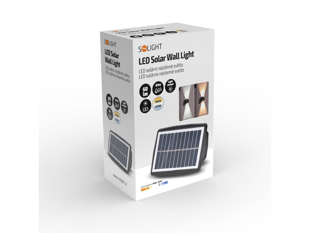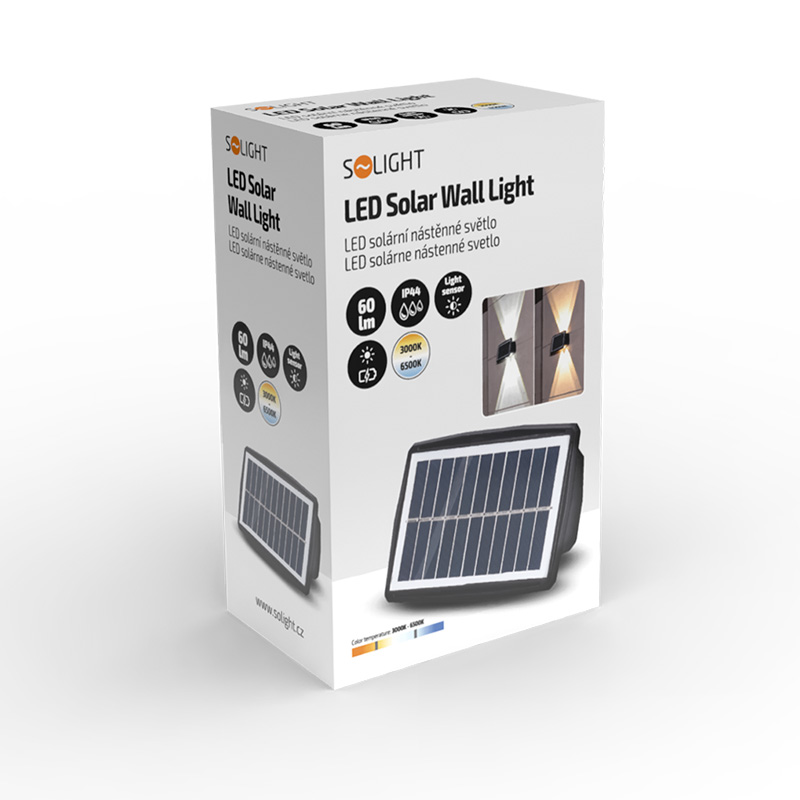 Solight LED solárne nástenné svetlo, teplá a studená biela, 15x10cm