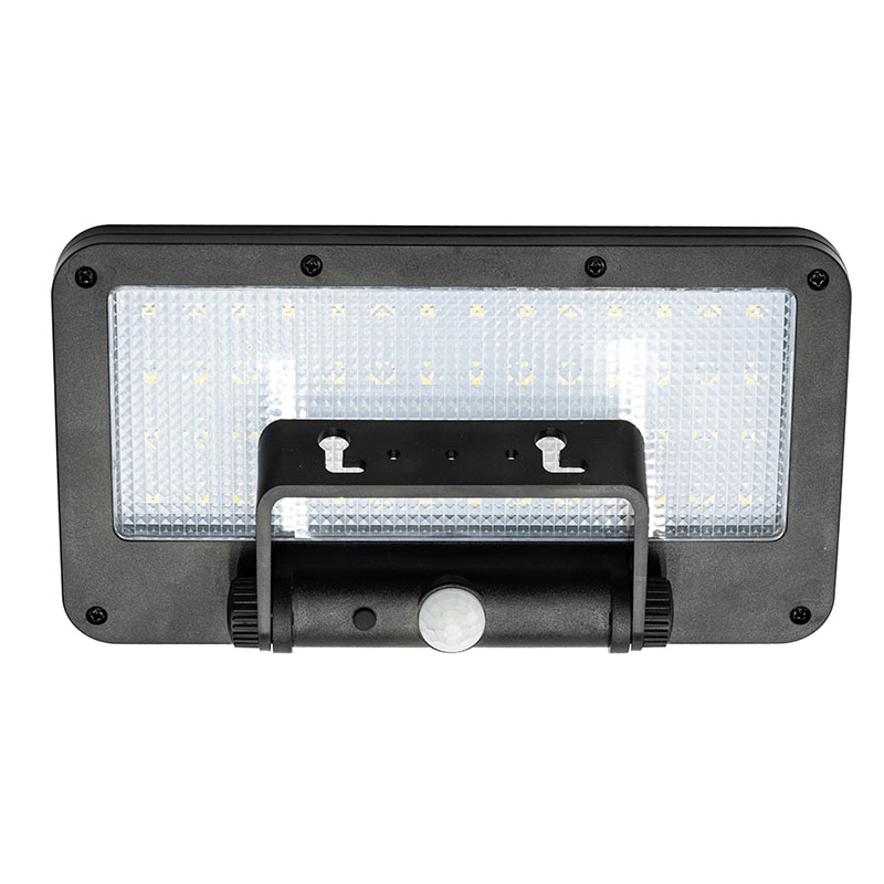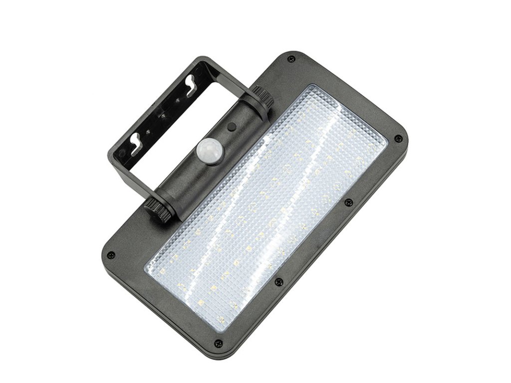 Pohybový senzor s detekčným uhlom 120 ° a dosahom až 8 metrov aktivuje svetlo na 20 alebo 20 sekúnd podľa zvoleného režimu. V noci môže svetlo fungovať aj v režime tlmeného osvetlenia. Napájanie zaisťuje integrovaná Li-Ion batéria 3,7V / 1500mAh, ktorá sa počas dňa dobíja solárnym panelom (5,5V / 300 mA). Doba nabíjania je približne 8 hodín. Vďaka krytiu IP54 je svetlo odolné proti dažďu aj prachu. Rozmery 203 × 145 × 41 mm a čierne ABS+PC telo zaisťujú dlhú životnosť a jednoduchú montáž bez potreby kabeláže.