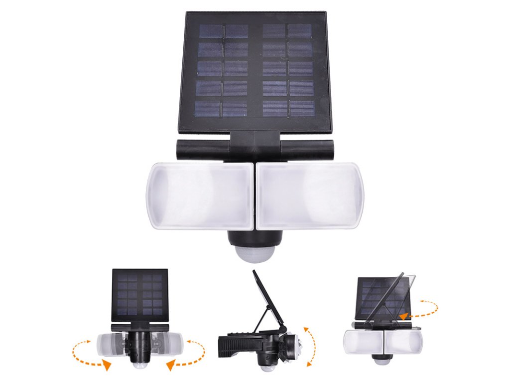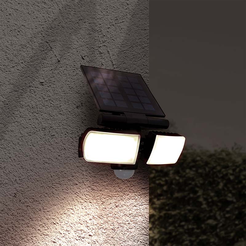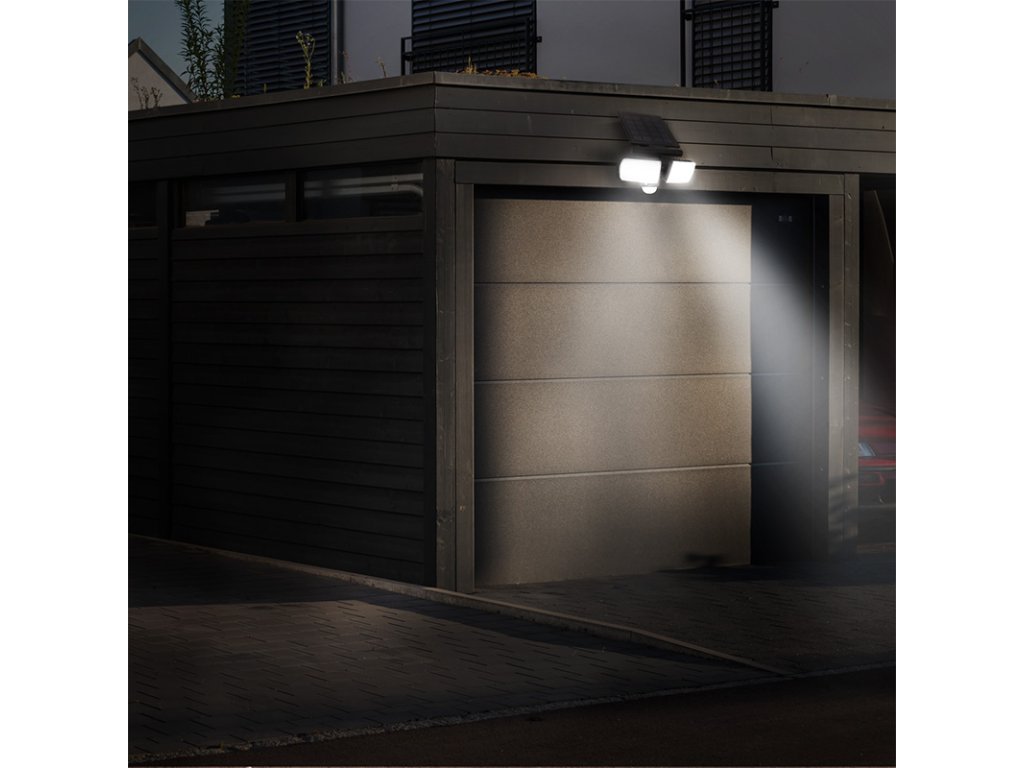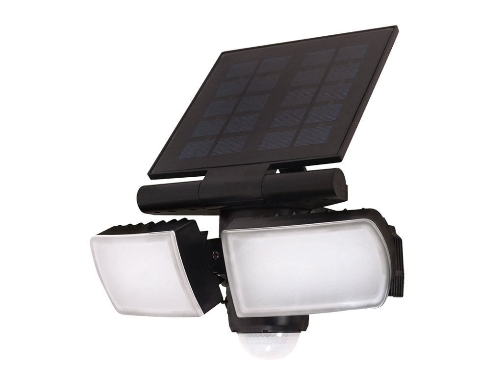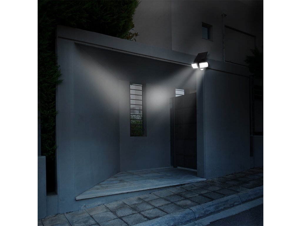 Solárne osvetlenie LED s nastaviteľným senzorom je ideálnou voľbou pre miesta bez prívodu elektrickej energie, ako sú vstupné brány, pergoly, prístrešky alebo parkovacie miesta. Vďaka integrovanému solárnemu panelu a výkonnej Li-Ion batérii (3,7 V / 2000 mAh) poskytuje 8 W svetla a 600 lm svetelného toku s neutrálnou bielou farbou (4000 K). Reflektory aj solárny panel možno ľahko nakláňať a otáčať, čím sa maximalizuje účinnosť smerovania svetla a zberu solárnej energie.