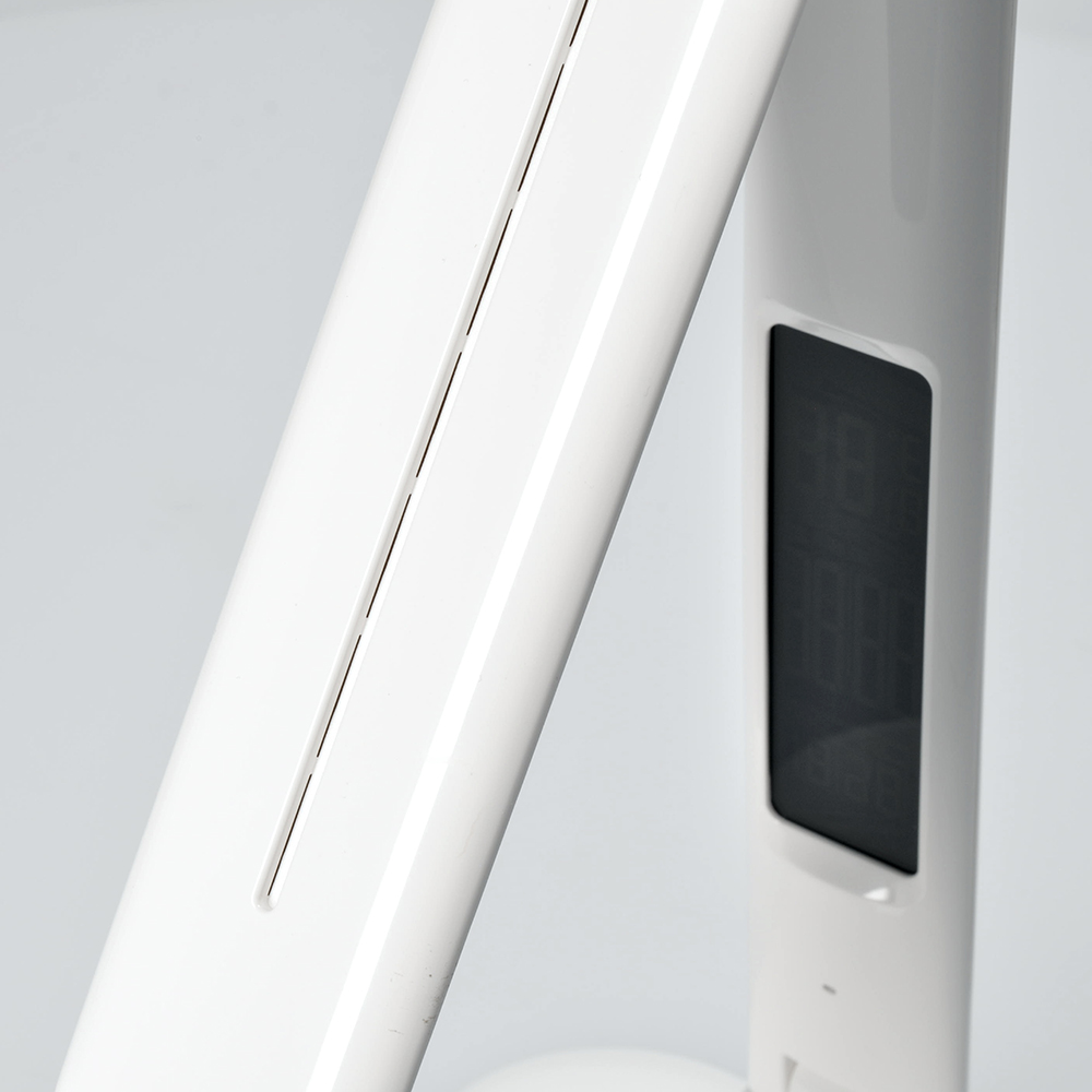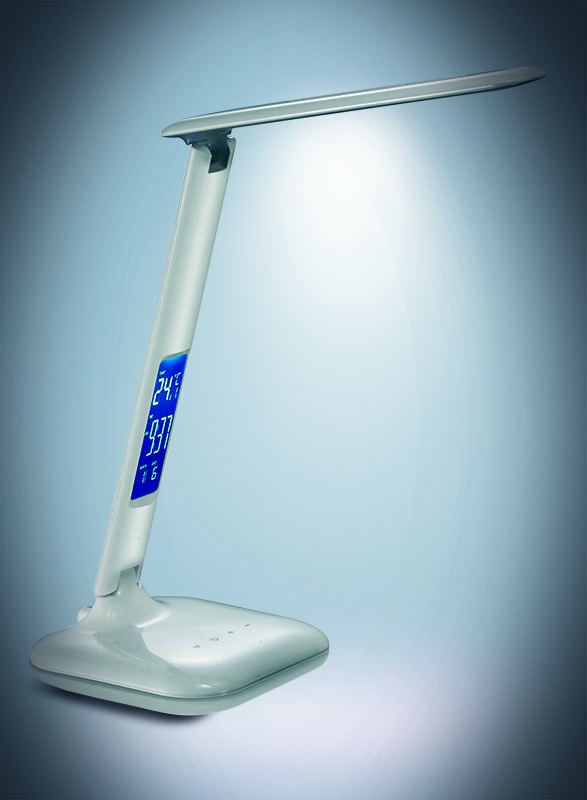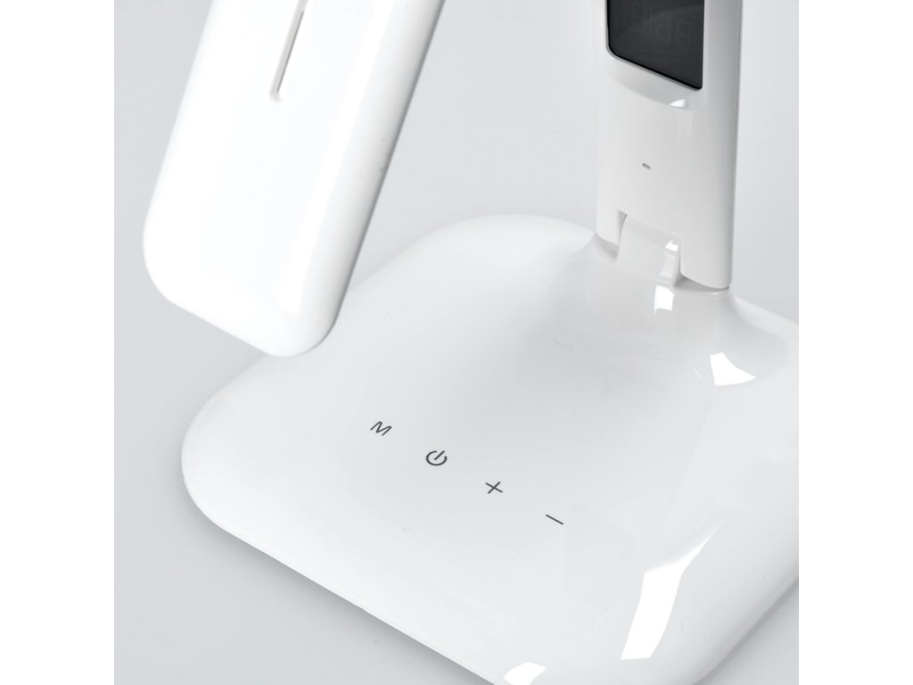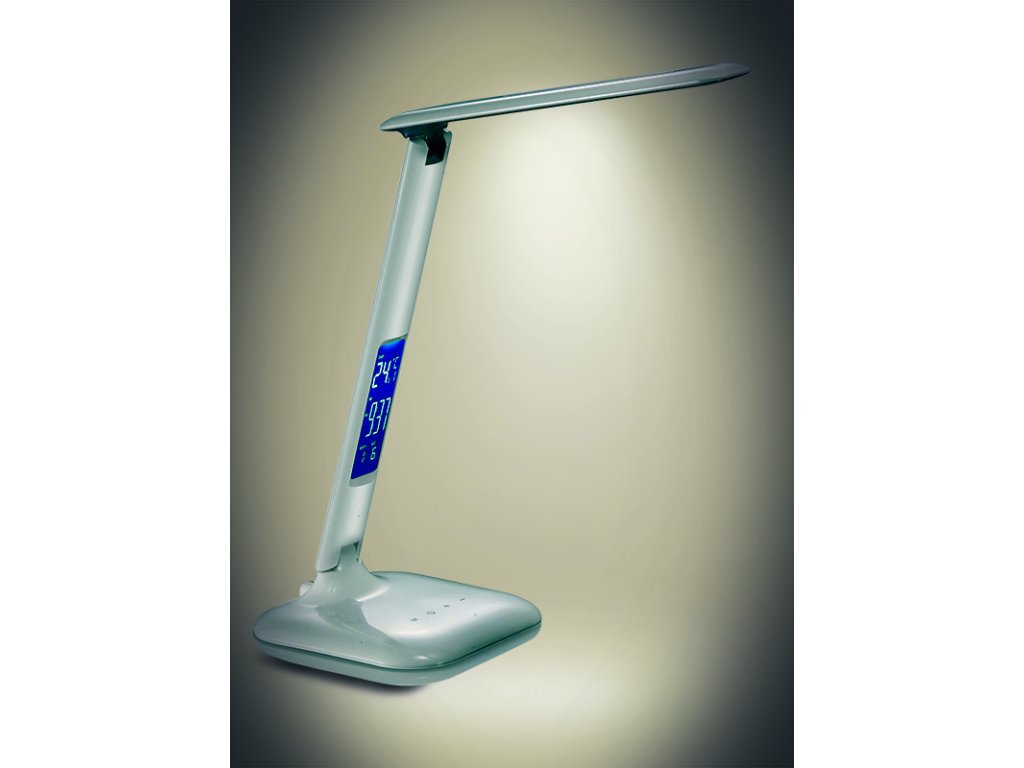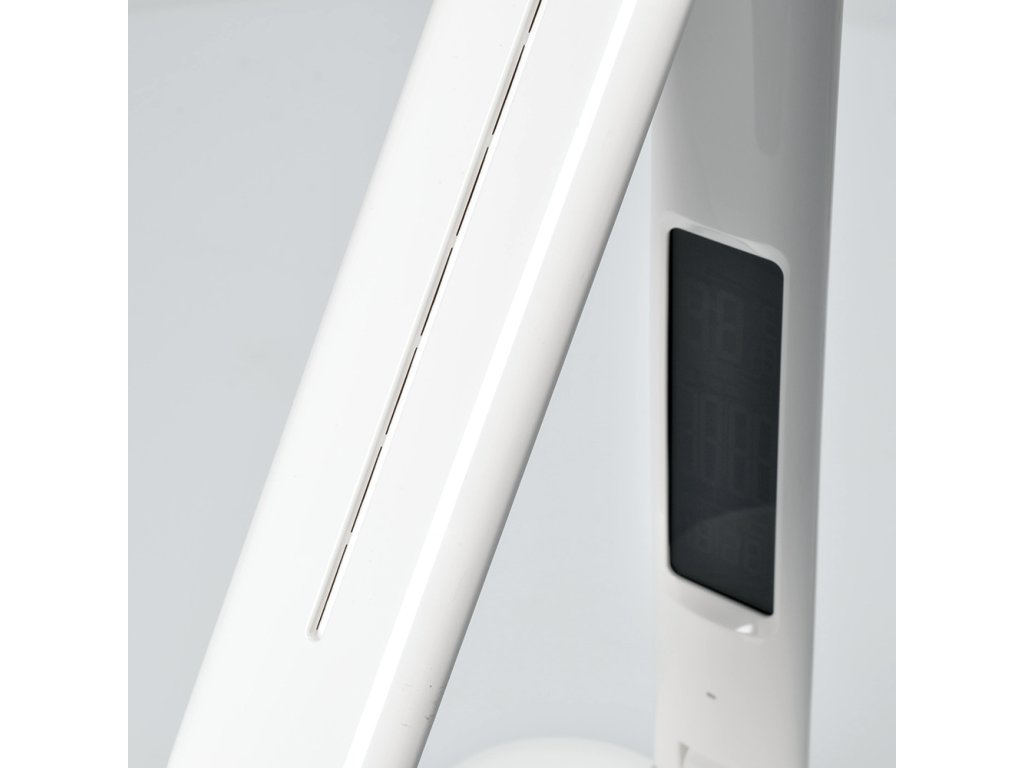 Lampa obsahuje praktický displej s funkciami hodín, kalendára, budíka a teplomera, takže budete mať všetky dôležité informácie vždy na očiach. Príkon 7 W a svetelný tok 300 lm poskytujú dostatočné osvetlenie na prácu aj odpočinok. Uhol svietenia je 140° a užitočný svetelný tok 258 lm. Lampa je napájaná zo siete (100-240 V), má dĺžku kábla 140 cm a rozmery približne 150 x 150 x 330 mm. Materiál: odolný plast PC. Napájací zdroj LED je zabudovaný a nie je možné ho vymeniť. Energetická trieda G.