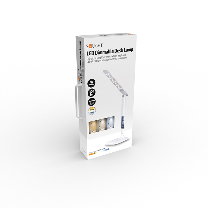 Solight LED stmievateľná stolná lampička s displejom, 7W, voľba teploty svetla, biely lesk