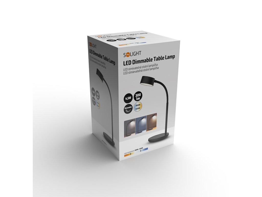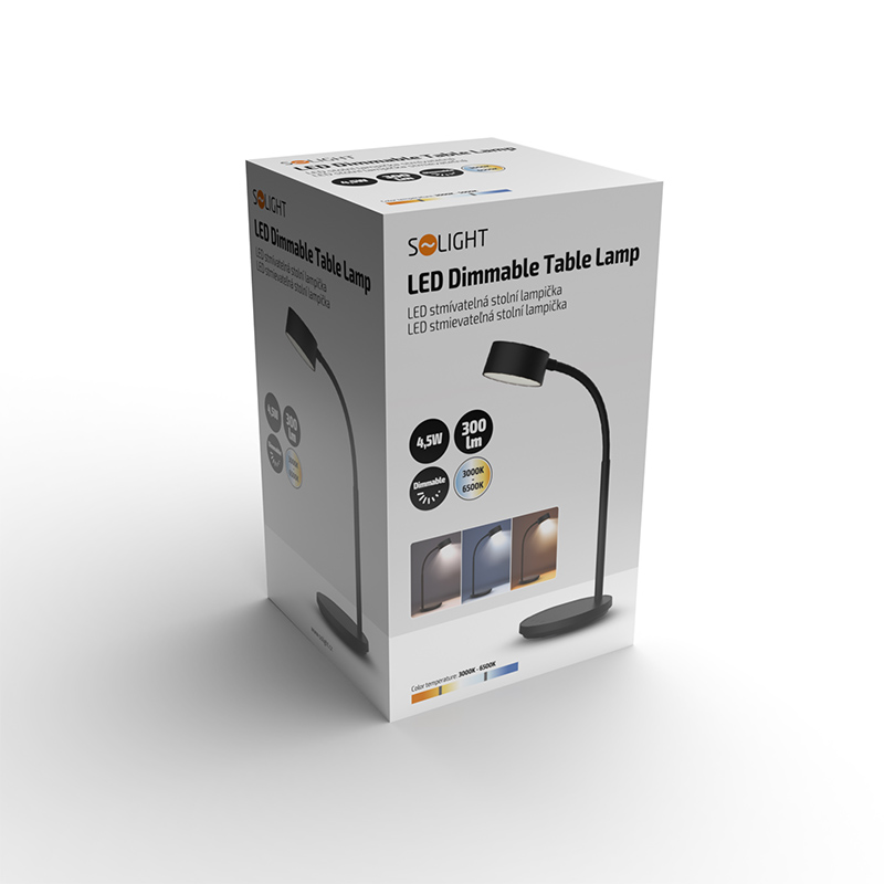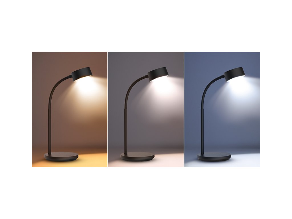 Solight LED stolná lampička, 4,5W, 300lm, 3CCT, čierna, podstavec