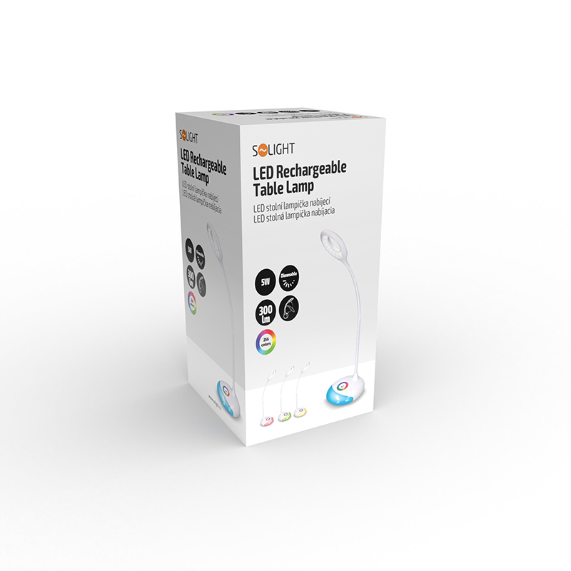 Solight LED stolná lampička nabíjacia, 5W, RGB podsvietenie, stmievateľná, USB napájanie
