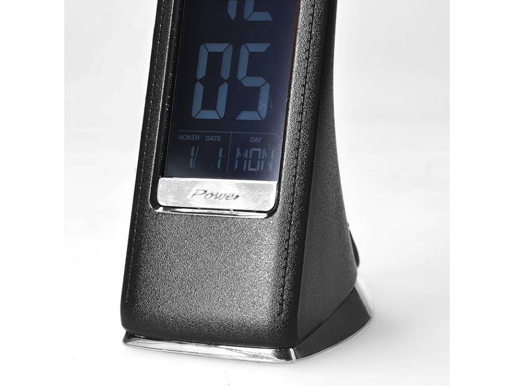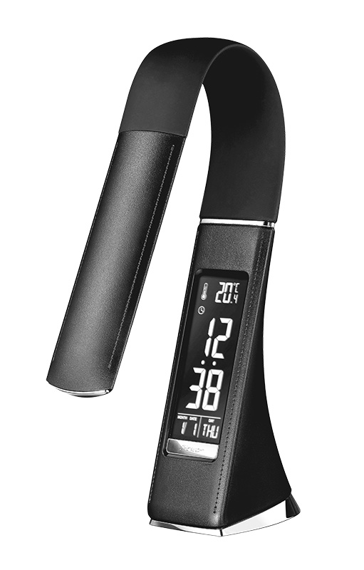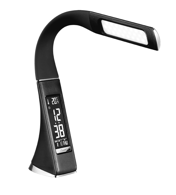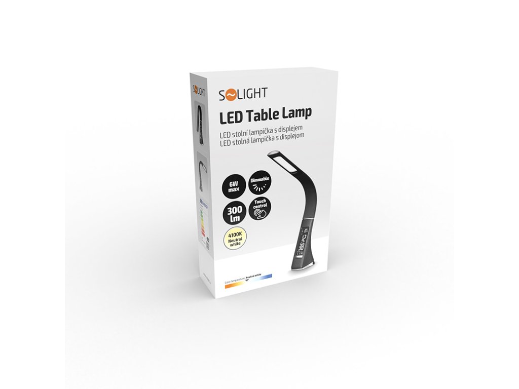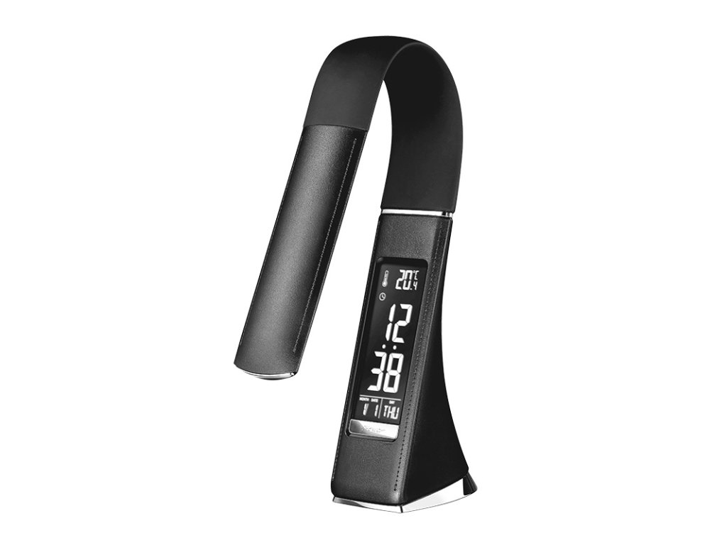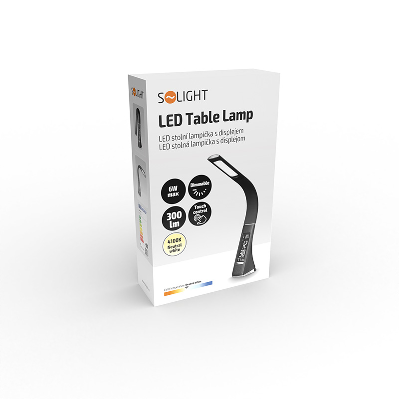 Solight LED stolná lampička s displayom, 6W, 4100K, koža, čierna