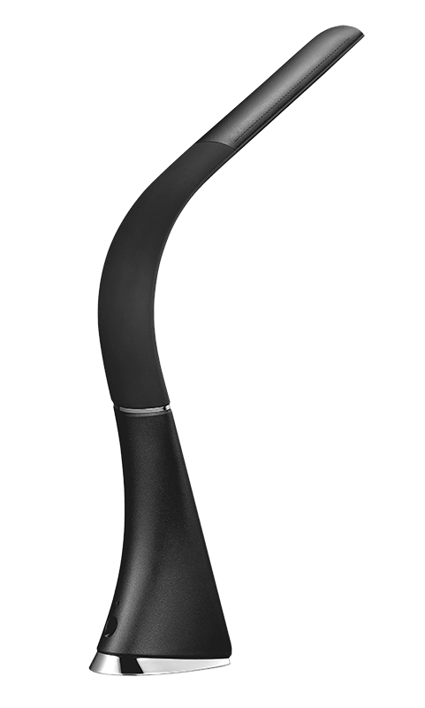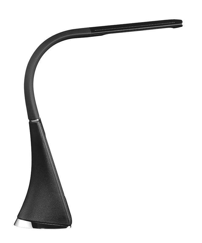 - stolná lampička s LED svetelným zdrojom a dizajnom čiernej kože