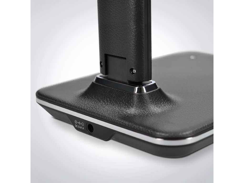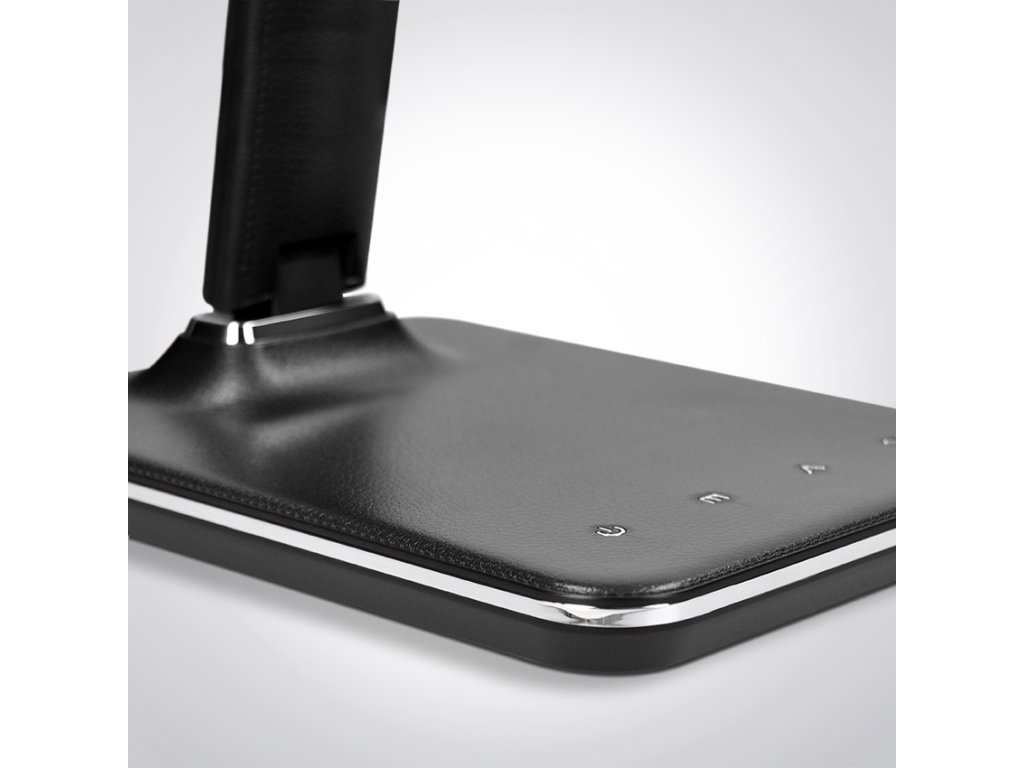- stolná lampička s LED svetelným zdrojom a dizajnom čiernej kože
