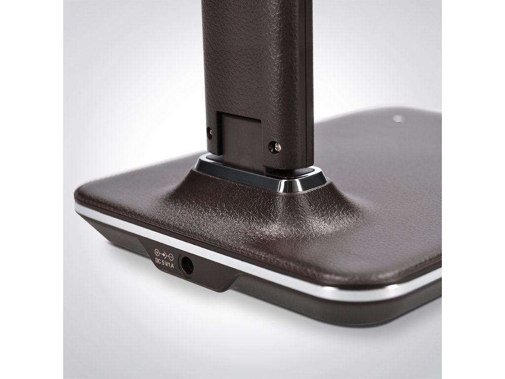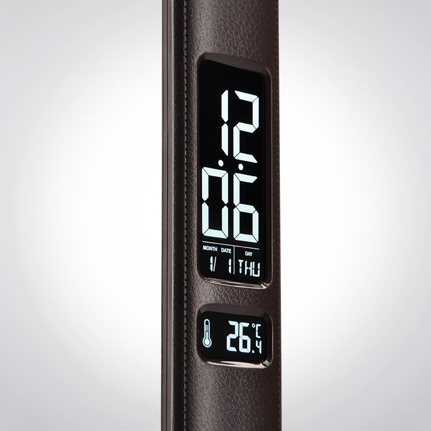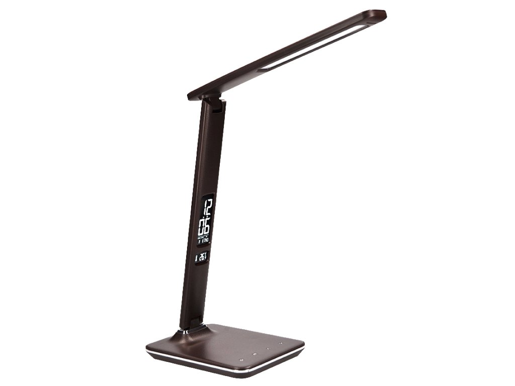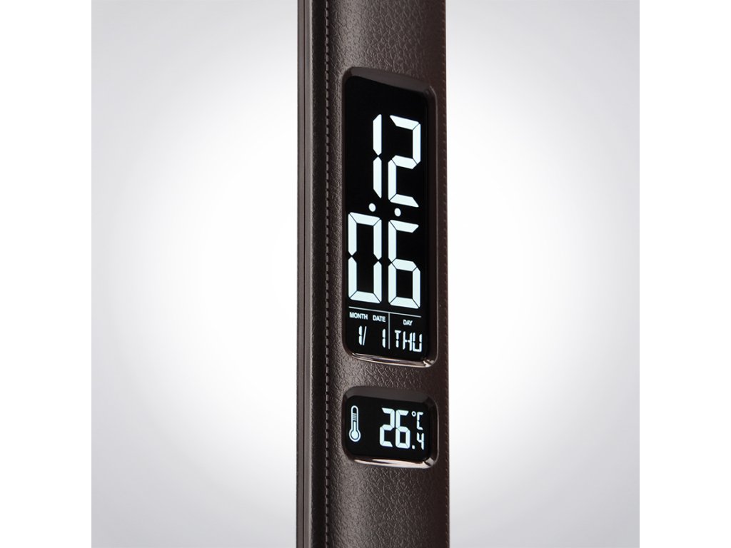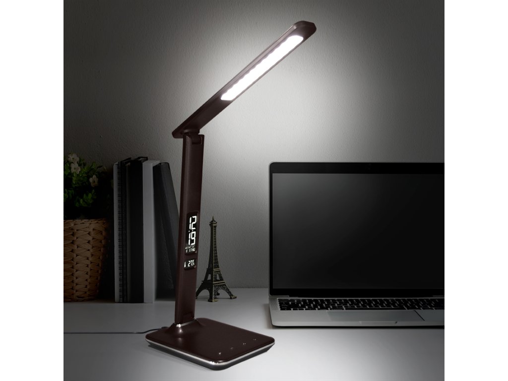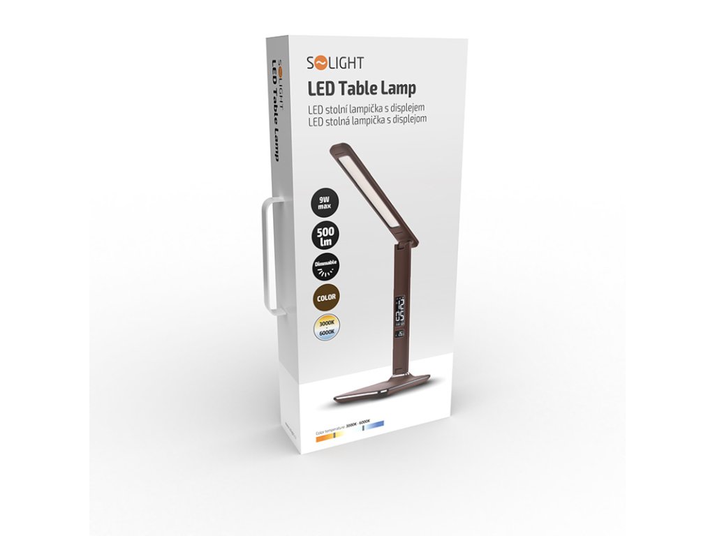 Solight LED stolná lampička s displejom, 9W, voľba teploty svetla, koža, hnedá