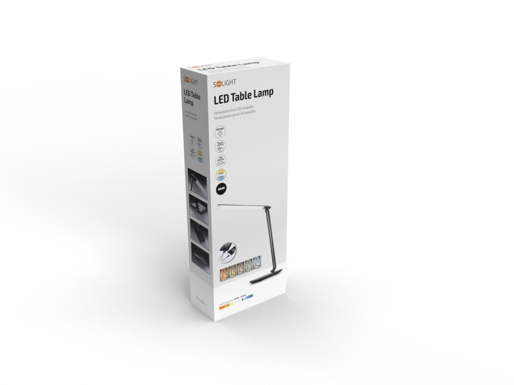 Solight LED stolná lampička stmievaťelná, 12W, voľba teploty svetla, USB, čierny lesk
