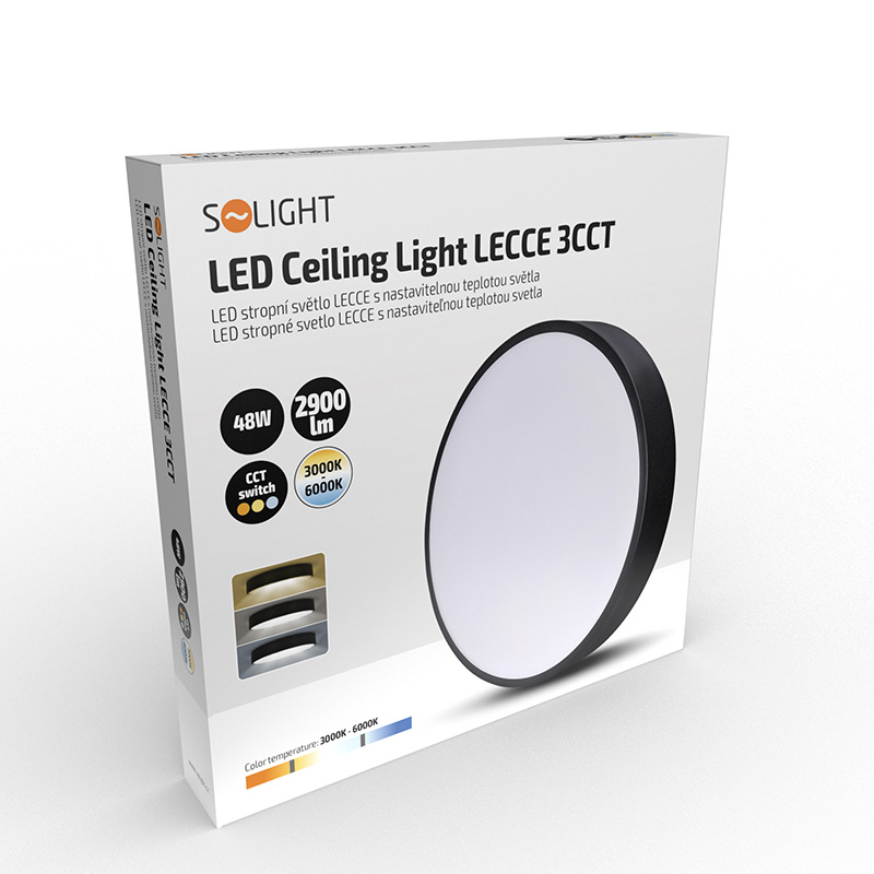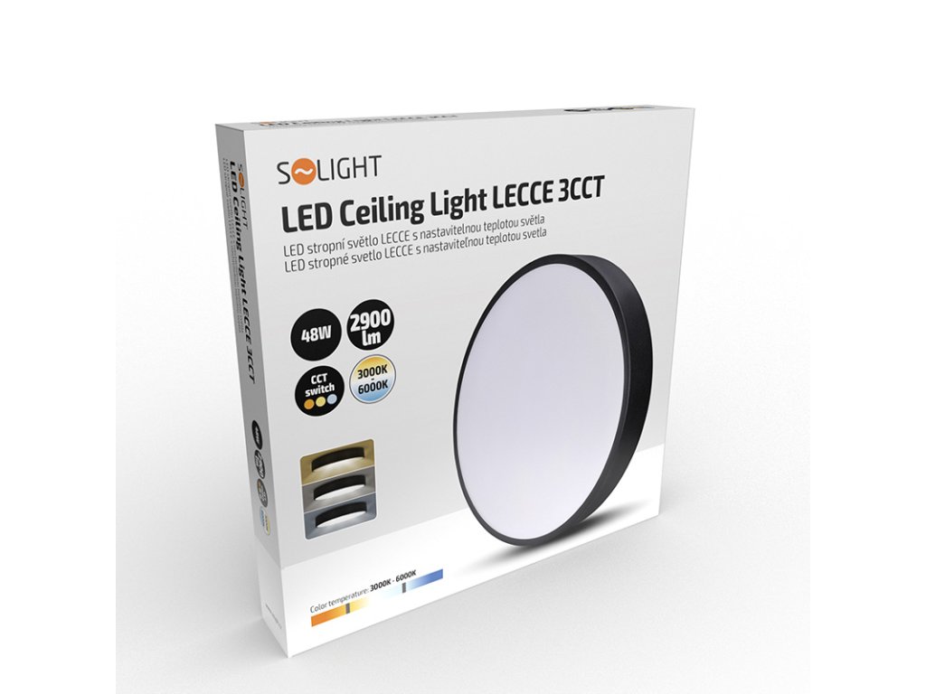 Solight LED stropné osvetlenie LECCE, 3CCT, 48W, 2900lm, 40cm, 3000/4000/6000K, čierna