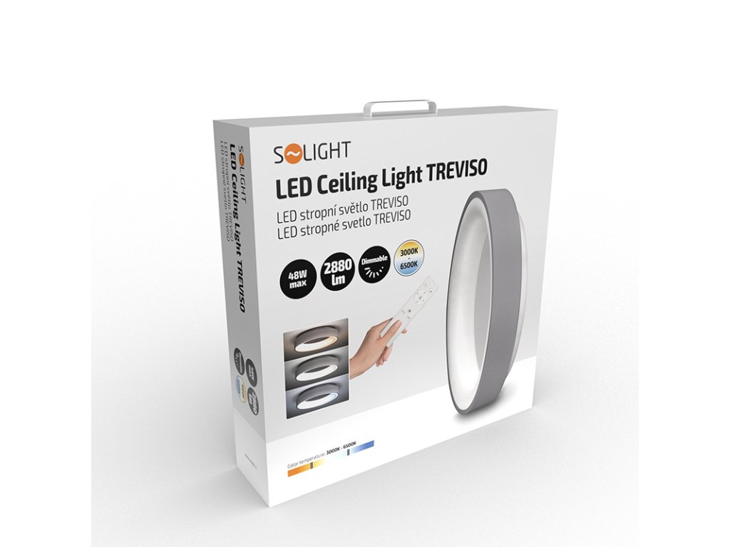 Solight LED stropné svetlo okrúhle Treviso, 48W, 2880lm, stmievateľné, diaľkové ovládanie, sivá