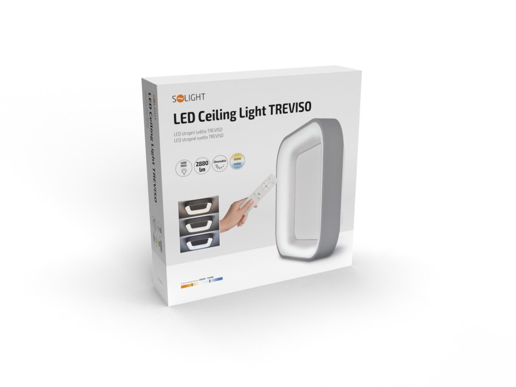 Solight LED stropné svetlo štvorcové Treviso, 48W, 2880lm, stmievateľné, diaľkové ovládanie, sivá