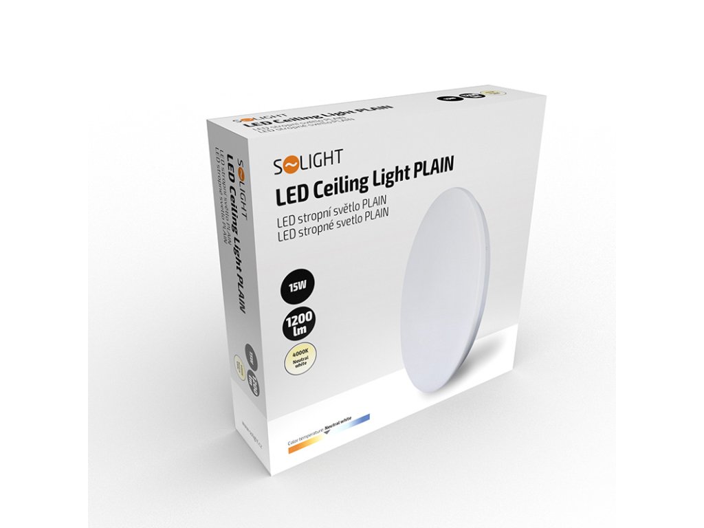 Solight LED stropné svietidlo PLAIN, 15W, 1000lm, 4000K, okrúhle, 26cm