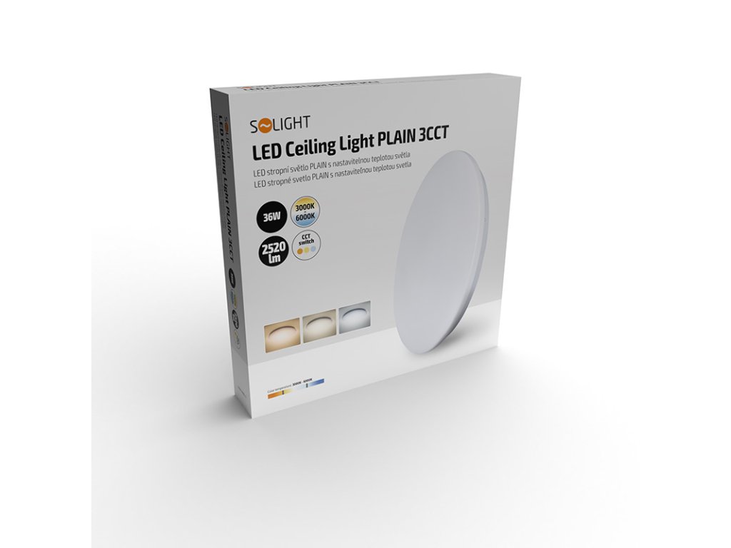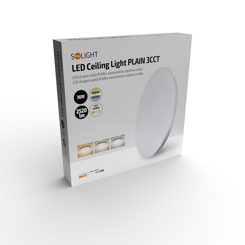 Solight LED stropné svietidlo PLAIN, 3CCT, 36W, 2520lm, 3000K, 4000K, 6000K, okrúhle, 45cm