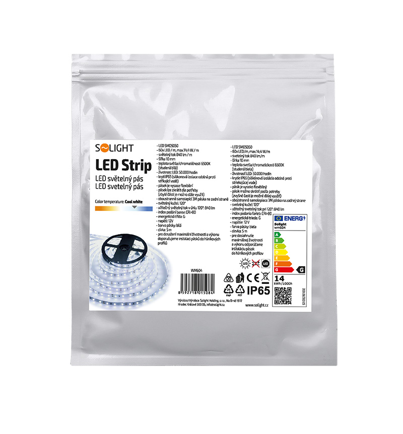 Ohebný pásik má silikónovú izoláciu IP65, takže je odolný proti striekajúcej vode. Samolepiaca páska 3M umožňuje jednoduchú inštaláciu, pásik je skracovateľný a vhodný na inštaláciu do hliníkových profilov. Životnosť LED diód je až 50 000 hodín. Šírka pásky: 10 mm, dĺžka: 5 m.