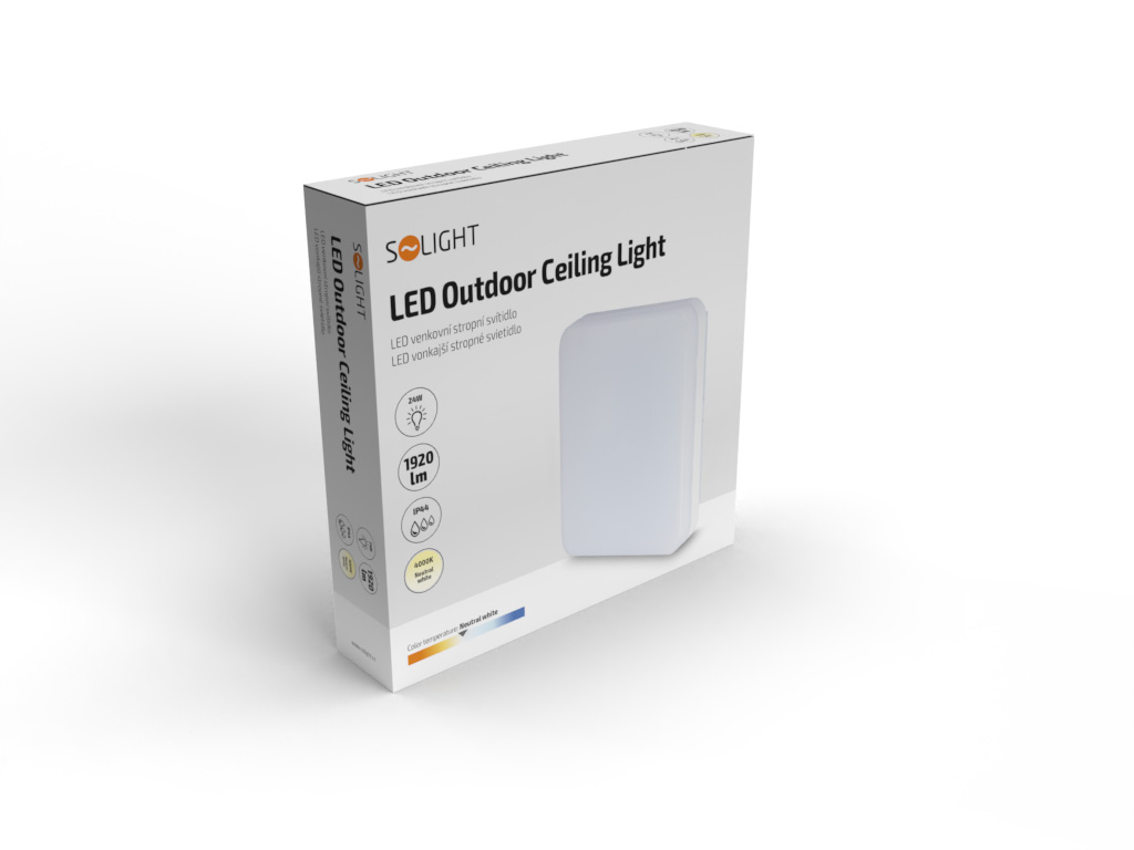 Výkonnejšie štvorcové svietidlo LED s výkonom 24 W a svetelným tokom 1920 lm poskytuje silné a rovnomerné svetlo ideálne pre väčšie priestory. Ponúka neutrálnu bielu farbu svetla (4000 K) a je určené na montáž na strop alebo na stenu vrátane vonkajšej montáže (IP54).
