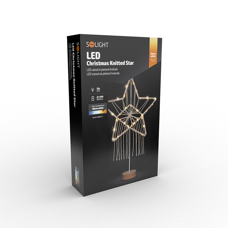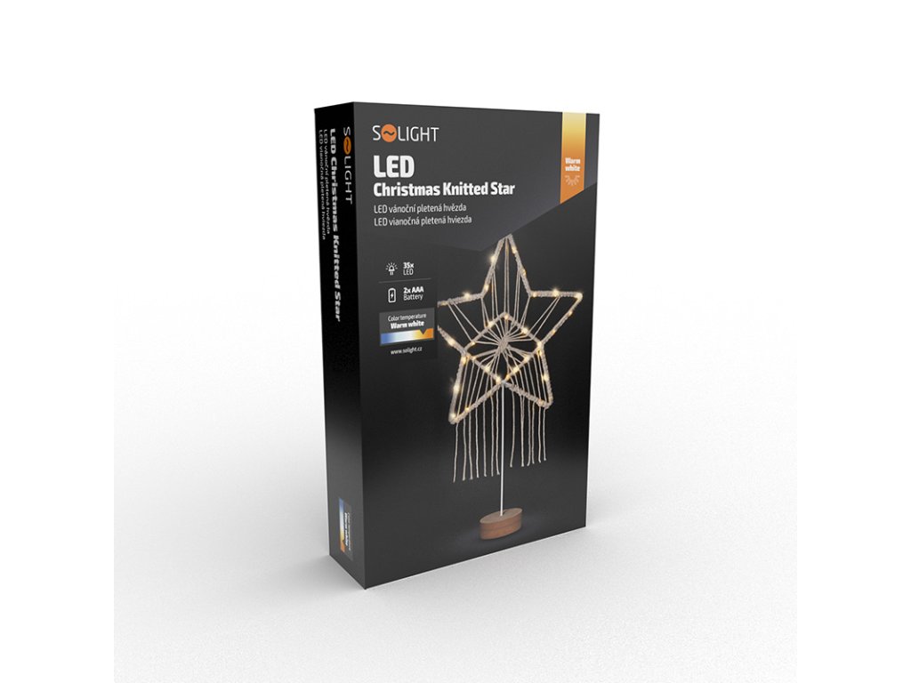 Solight LED vianočná hviezda stolná, pletená, 35x LED, 2x AAA