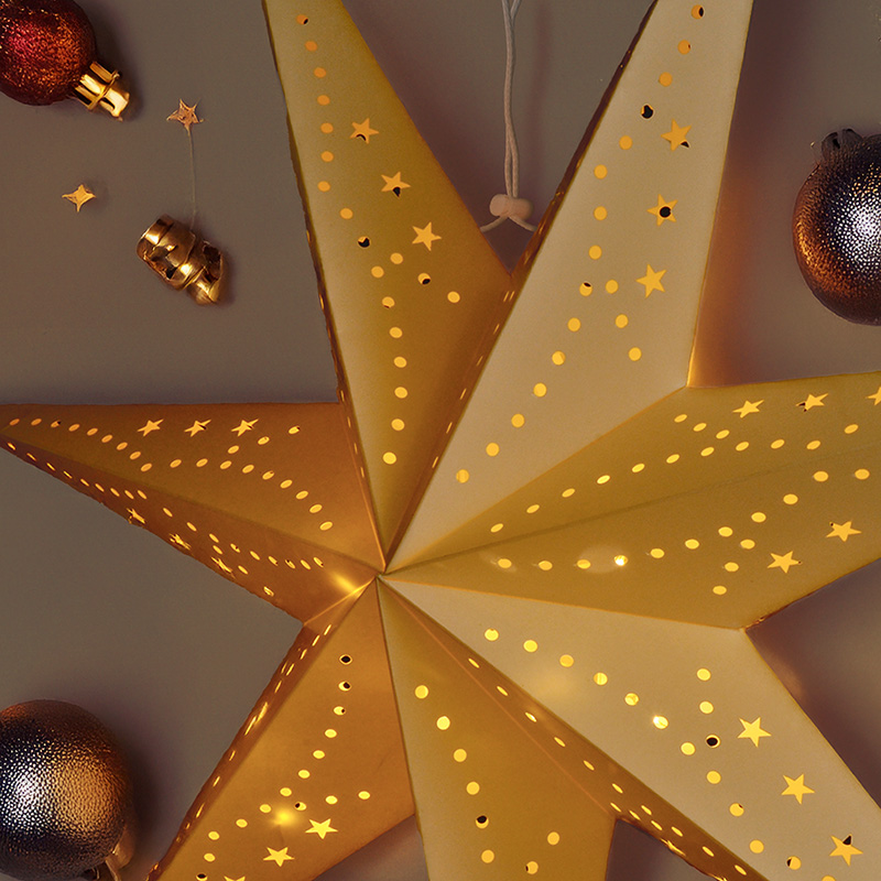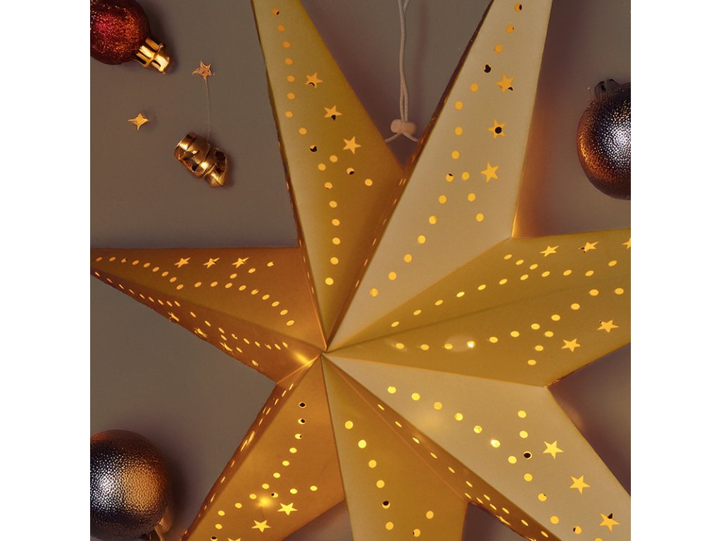 Hviezda je vyrobená z ľahkého papiera, vďaka čomu pôsobí vzdušne a elegantne. Je dodávaná v zloženom stave v krabici pre ľahkú prepravu a skladovanie. Ideálne na výzdobu okien, stien alebo ako štýlový doplnok slávnostného interiéru.