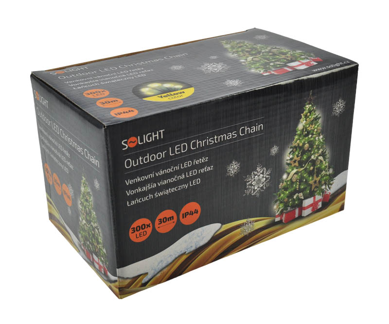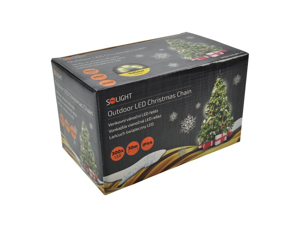 Solight LED vianočná reťaz, 300 LED, 30m, prívod 5m, IP44, teplá biela