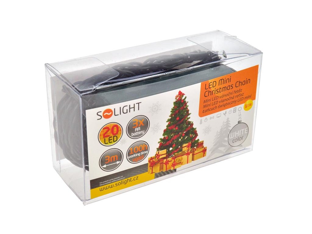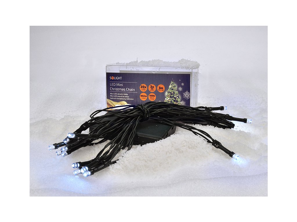 Zelená šnúra bude diskrétne ladiť s vetvičkami vianočného stromčeka alebo inými zelenými dekoračnými prvkami. Reťaz je napájaná tromi batériami AA a s kvalitnými alkalickými batériami JCB dosiahne minimálne 100 hodín prevádzky. Dĺžka napájacieho kábla je 30 cm. Stupeň krytia IP20 zaručuje bezpečné používanie v interiéri. Reťaz je uložená v praktickej priehľadnej škatuli, ktorá je ideálna aj ako darčekové balenie. Skvelá voľba pre nenápadné a vkusné vianočné osvetlenie.