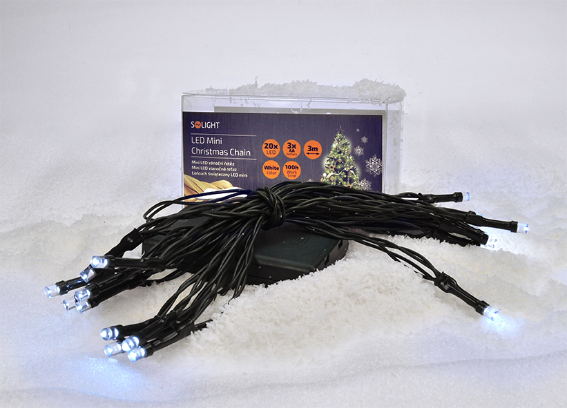 Solight LED vianočná reťaz, 3m, 20xLED, 3x AA, biele svetlo, zelený kábel