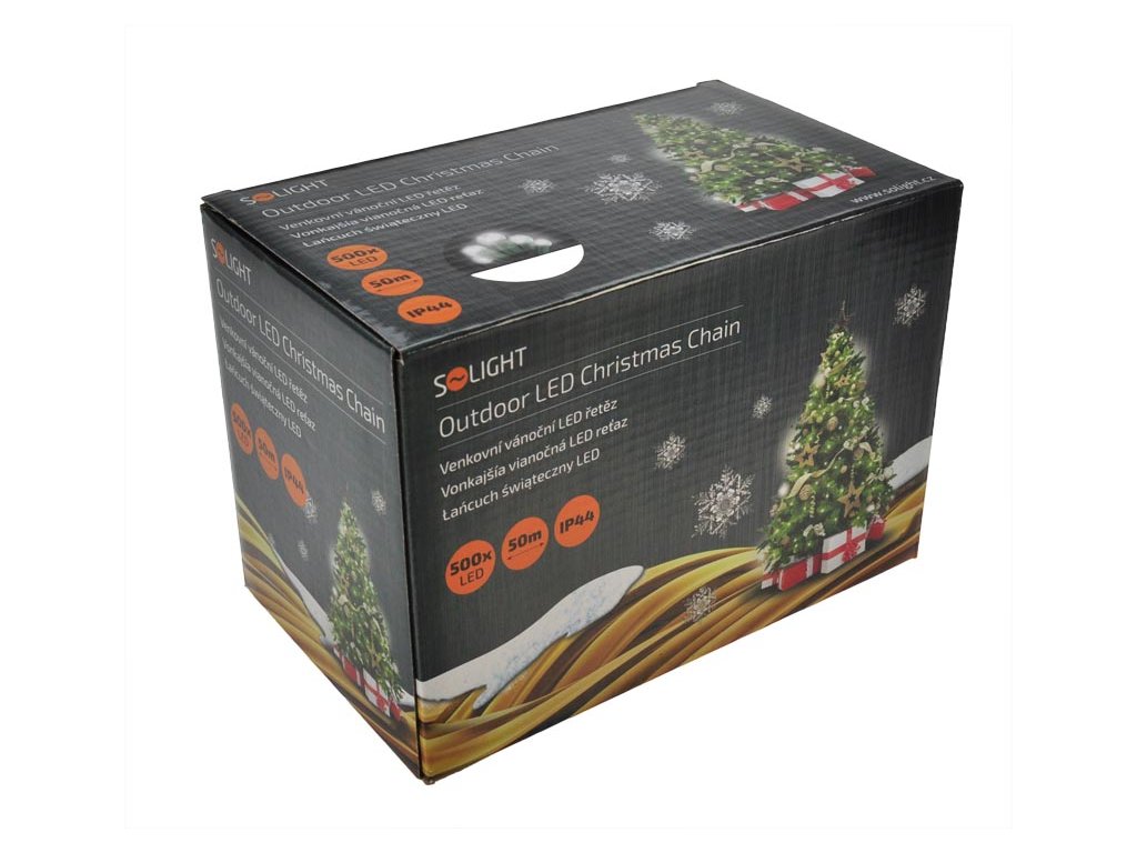 Solight LED vianočná reťaz, 500 LED, 50m, prívod 5m, IP44, biela
