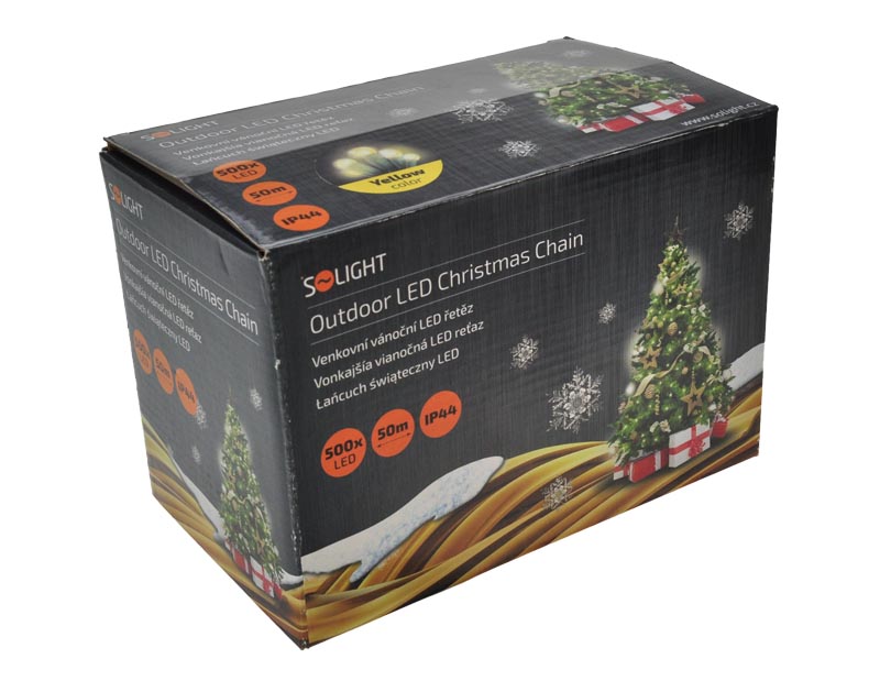 Solight LED vianočná reťaz, 500 LED, 50m, prívod 5m, IP44, teplá biela