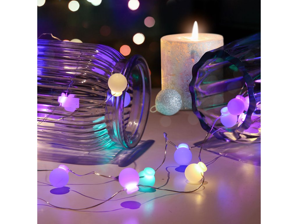 Osvieťte svoj interiér hravou reťazou s 20 farebnými LED guľôčkami. Táto 2 m dlhá reťaz ponúka farebné osvetlenie ideálne do detskej izby, na parapet alebo okolo vianočného stromčeka. Každá z guľôčok svieti inou farbou a spoločne vytvárajú veselú sviatočnú atmosféru.