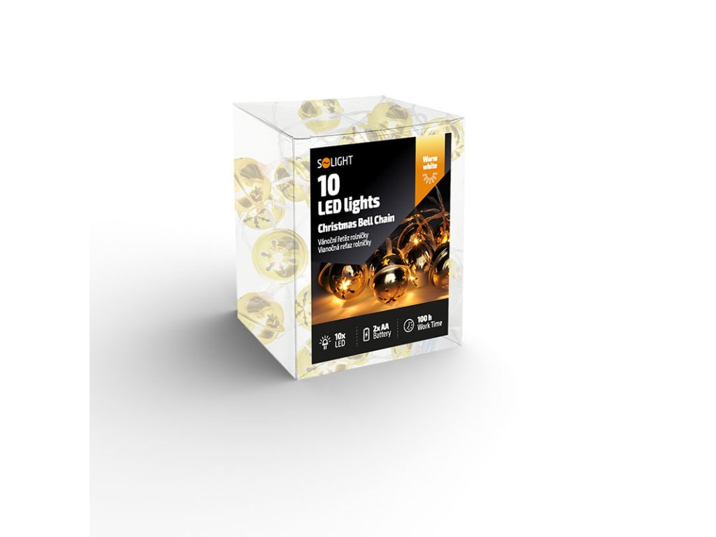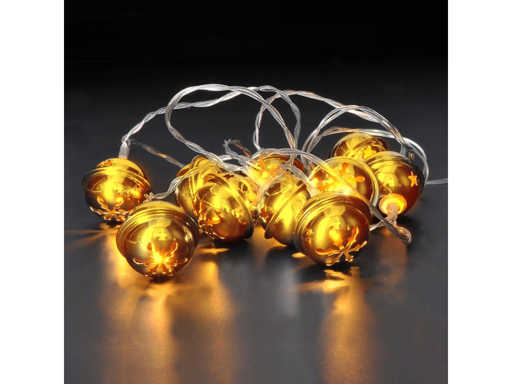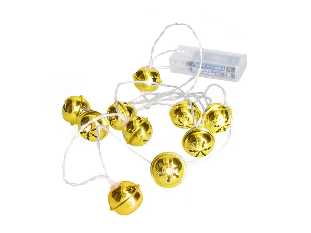 Solight LED vianočná reťaz rolničky, 10x LED, zlatá, 1,5m, 2x AA