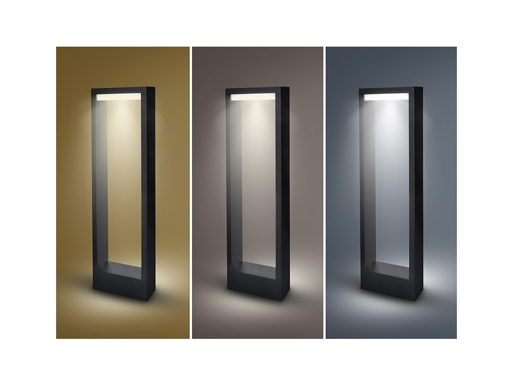 Stĺpiková verzia svietidla Ragusa LED prináša rovnaké vlastnosti ako nástenná verzia, ale vo formáte ideálnom na umiestnenie pozdĺž ciest, v záhradách, na terasách alebo príjazdových cestách. Svietidlo ponúka možnosť výberu chromatickosti (3000K / 4000K / 6000K) prostredníctvom integrovaného prepínača a poskytuje svetelný tok 450 lm s rovnomerným rozptylom vďaka uhlu 120°.