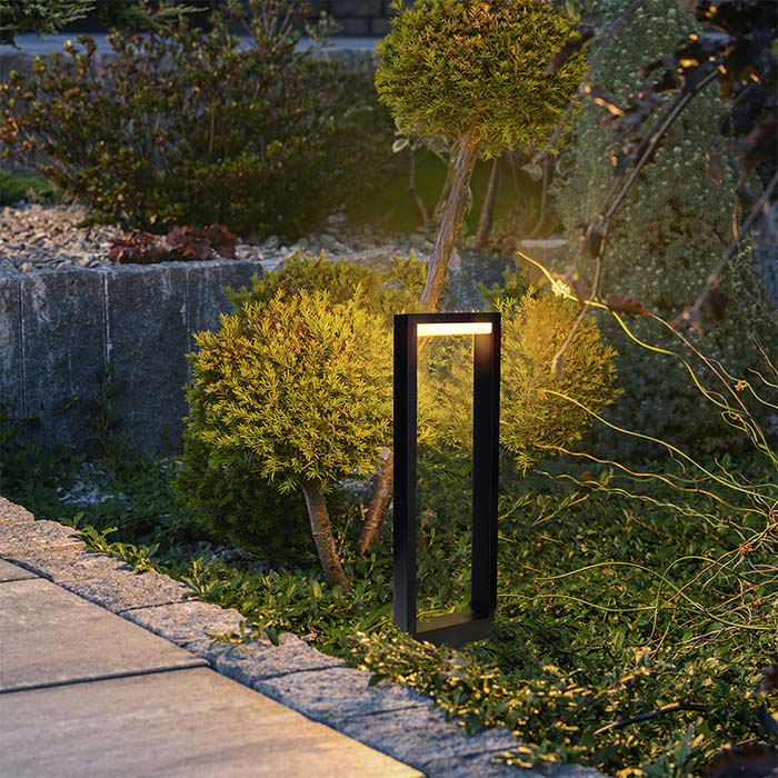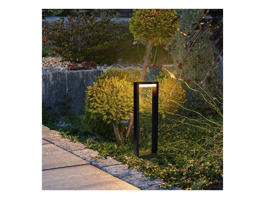 Vyrobené je z odolného hliníka, má krytie IP54 a životnosť LED až 30 000 hodín. Čierna povrchová úprava a rozmery 150 × 500 × 60 mm umožňujú pevné upevnenie v ploche alebo medzi záhonmi. Ideálne ako moderné a funkčné záhradné osvetlenie bez potreby zložitého zapojenia.