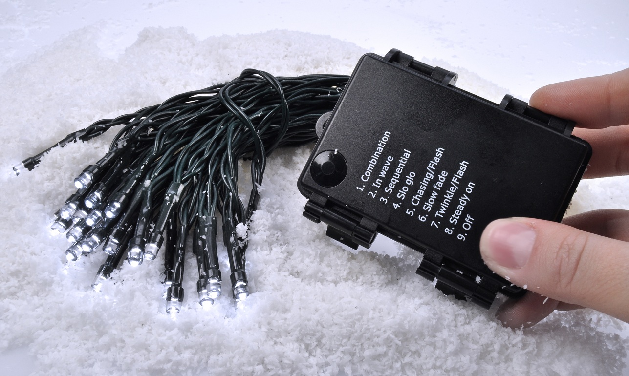 Reťaz je napájaná tromi batériami AA (nie sú súčasťou balenia) a vydrží približne 72 hodín. Dĺžka svietiaceho kábla je 5 metrov, vzdialenosť medzi LED diódami je 10 cm a napájací kábel meria 30 cm. Vhodná na použitie v interiéri aj exteriéri (IP44). Zelený kábel ladí s tradičnými dekoráciami a svetlo jemne vyniká. Dodáva sa vo farebnej škatuli - ideálne aj ako darčekové balenie.